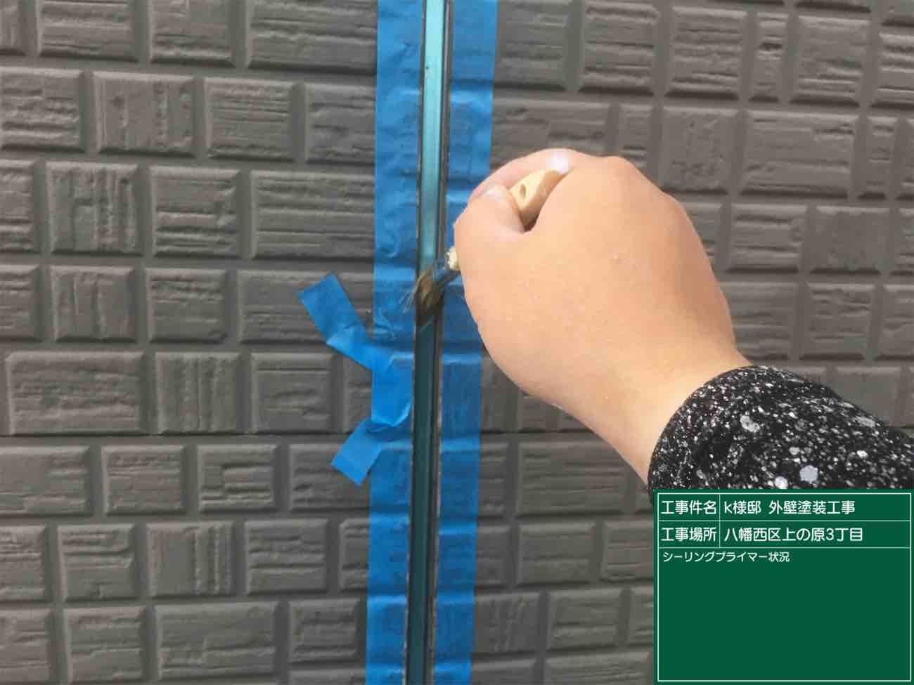 目地の側面にプライマーという接着作用のあるものを塗布していきます。