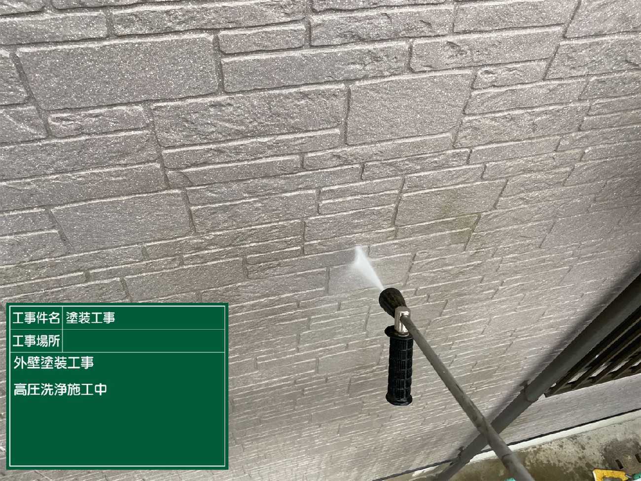 屋根から洗浄をしていきます。色あせやコケなどの付着もあるためしっかり綺麗にしていきます。