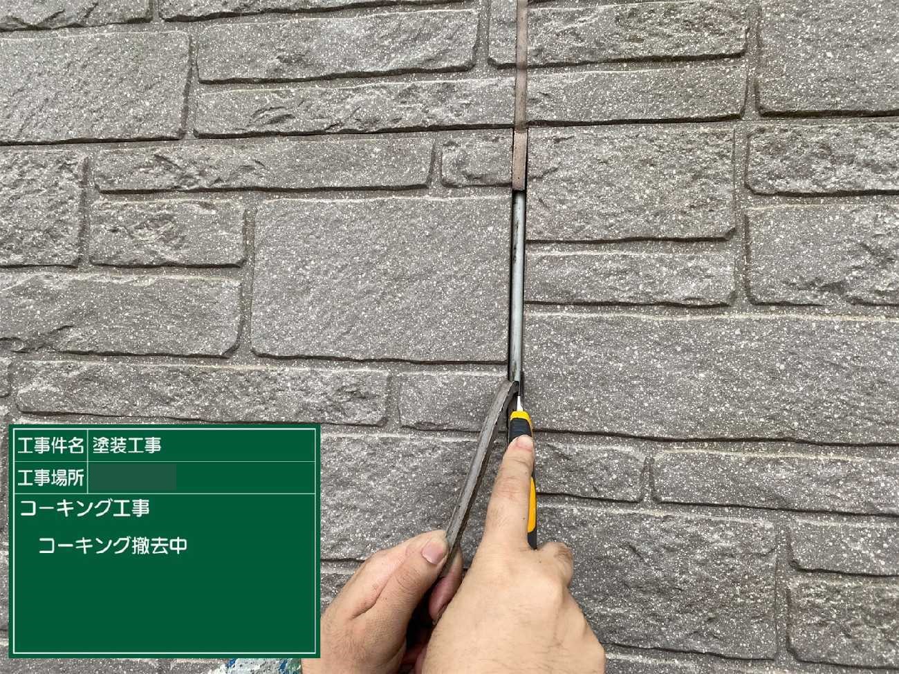 塗布後は目地の底にボンドブレーカーを接着させ、シーリングの3面接着を防ぎます。