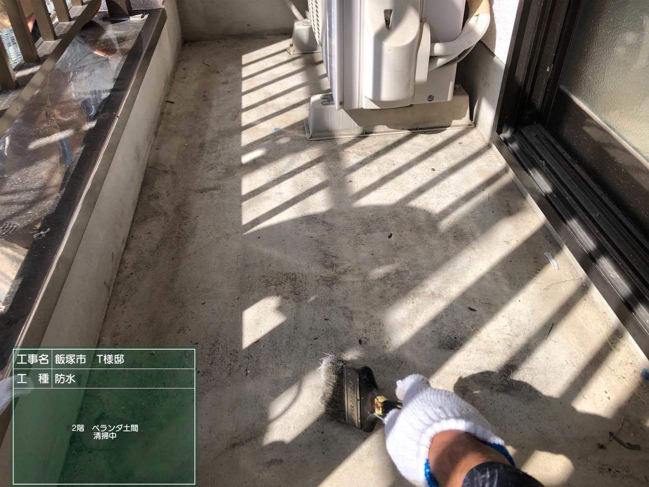 ベランダ防水 ケレン作業後清掃