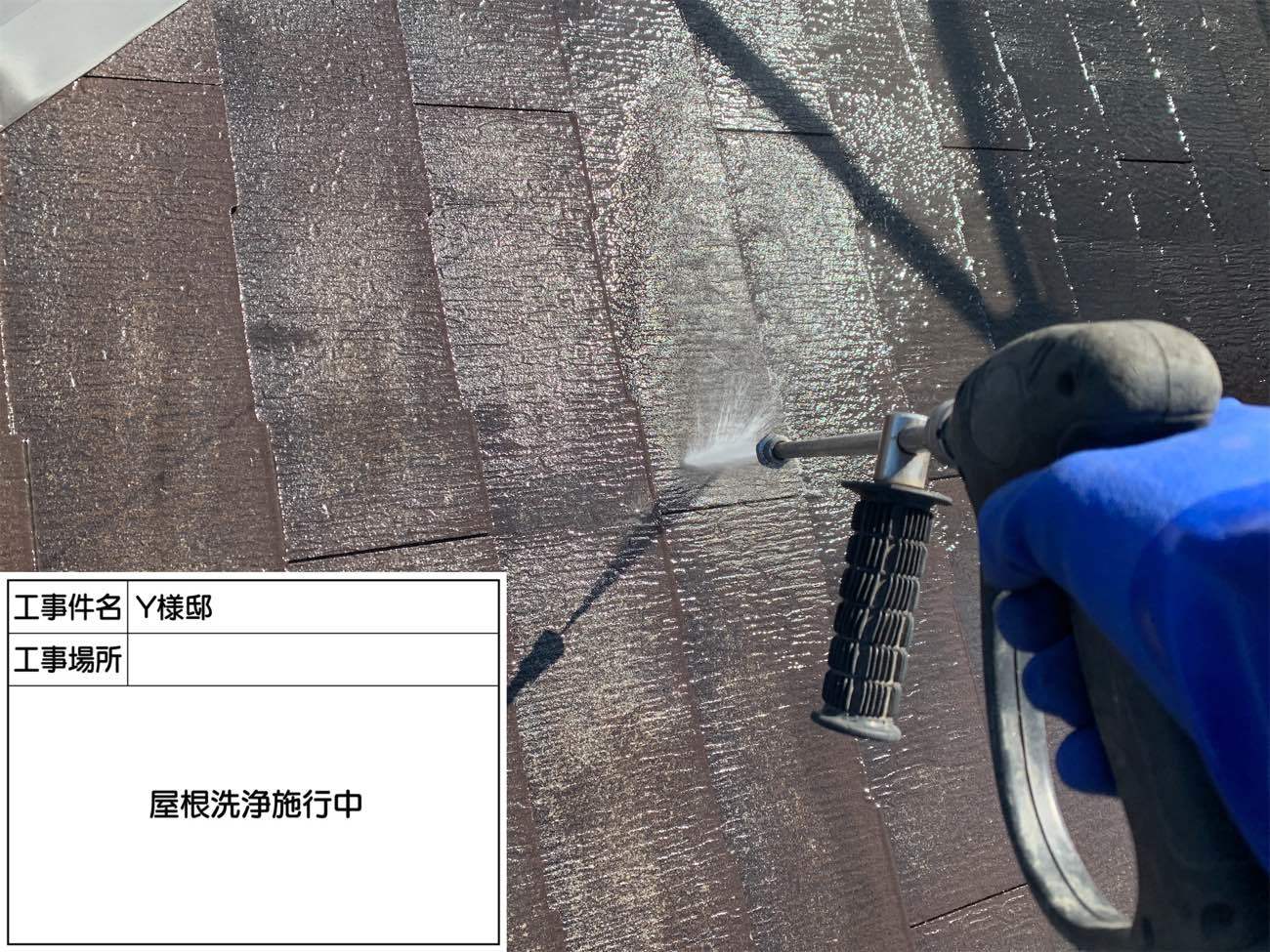 まずは、屋根についた苔やカビを洗い流していきます。 ここでしっかり汚れを落とさないと、高い塗料を塗っても剥がれてしまいます。