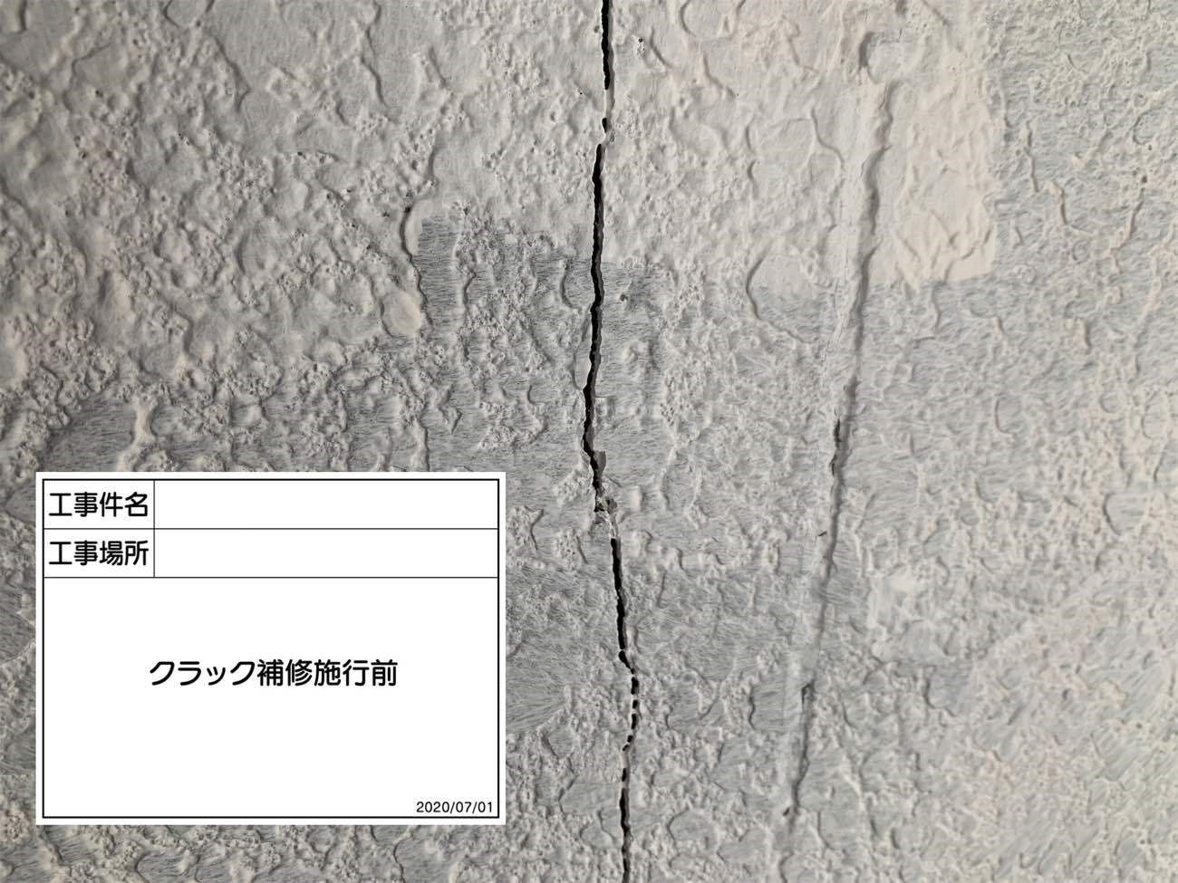 外壁に大きなクラックが入っています。 ここから水が入ると、雨漏りに繋がり、内装に雨染みができてしまいます。
