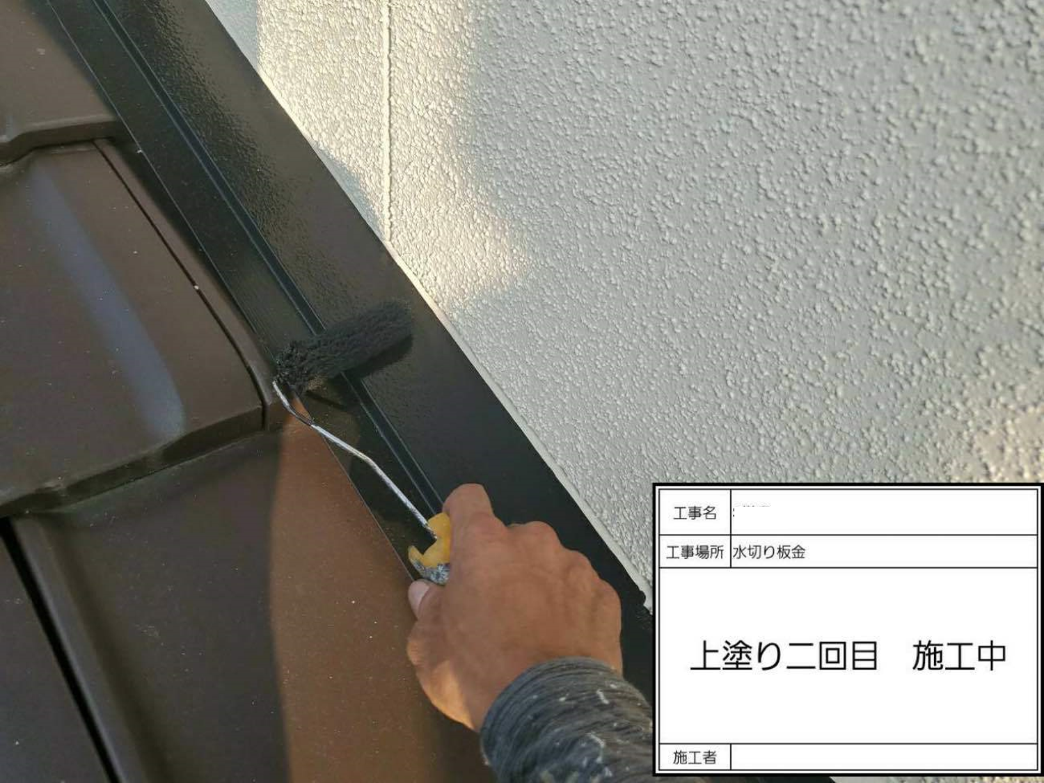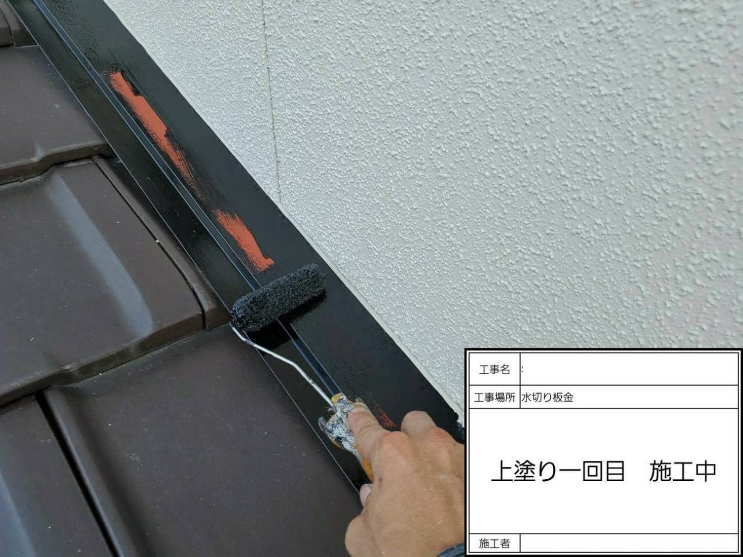 今回お屋根は陶器瓦ということで施工しておりませんが、板金部分の防水性は低下してしまっていたためその部分のみ塗装していきます。