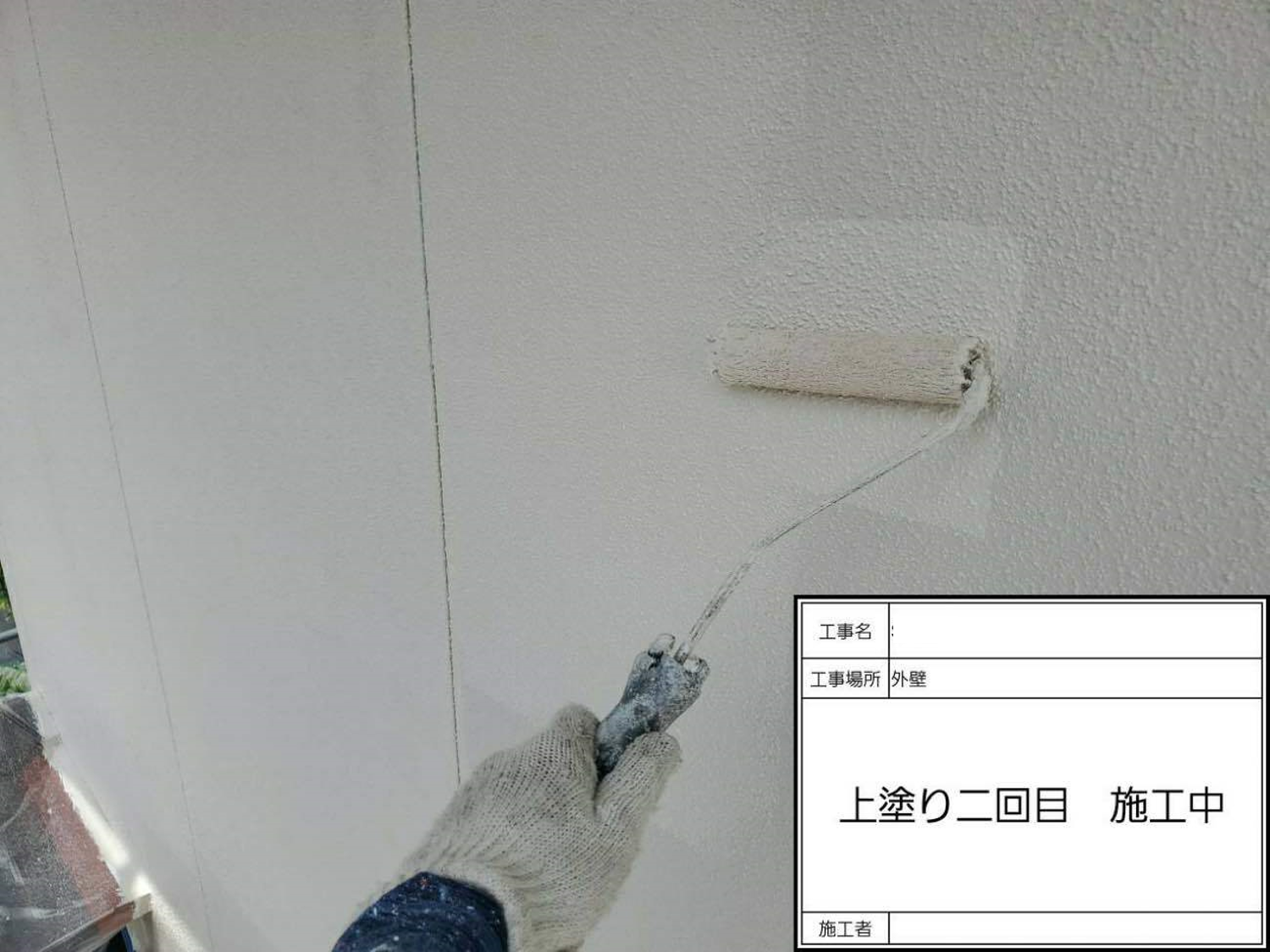 シーリングがある外壁の場合、このように塗装工程に入るとシーリングの施工状況が確認できなくなってしまうため、シーリング工程が完了した時点で一度目視て確認しておかれることをお勧めします。
