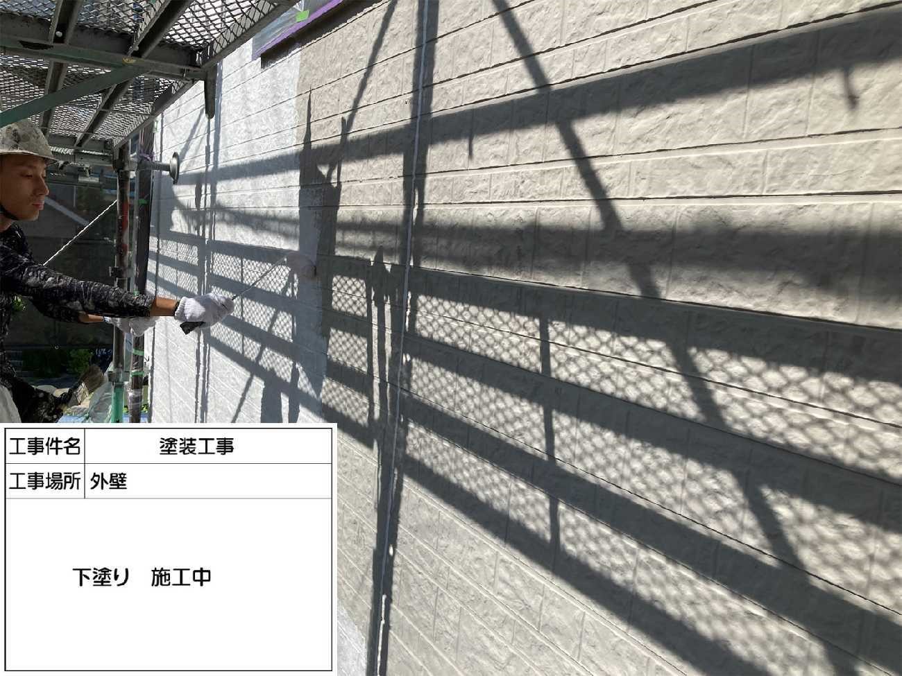外壁は下塗り→中塗り→上塗りの順で塗ります。 いくら上に塗っていく塗料が高くても、下塗りがしっかり塗れていないと すぐに剥がれてしまいます。