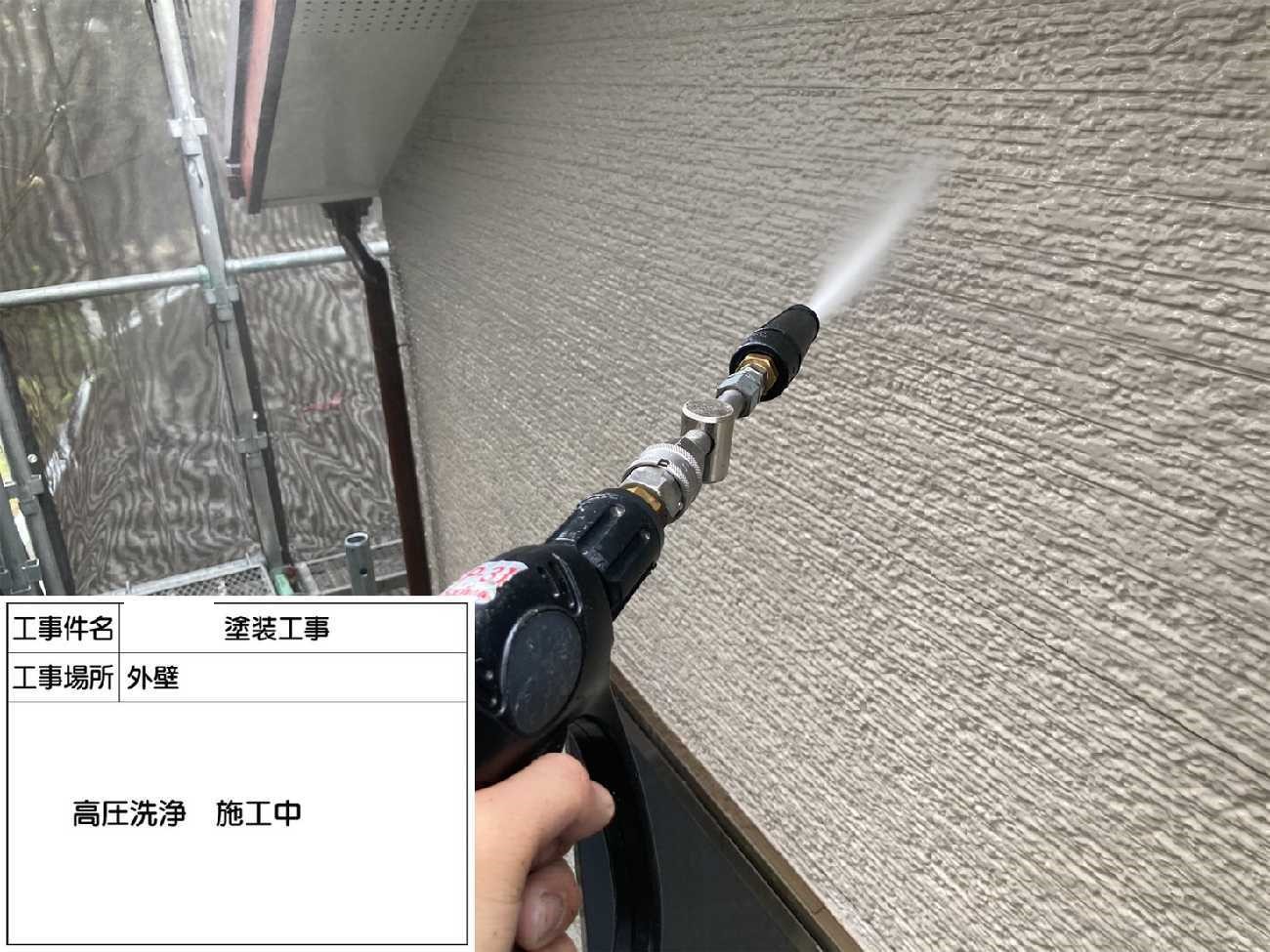 外壁も同様に、コケやカビがついているので綺麗に洗い流します。