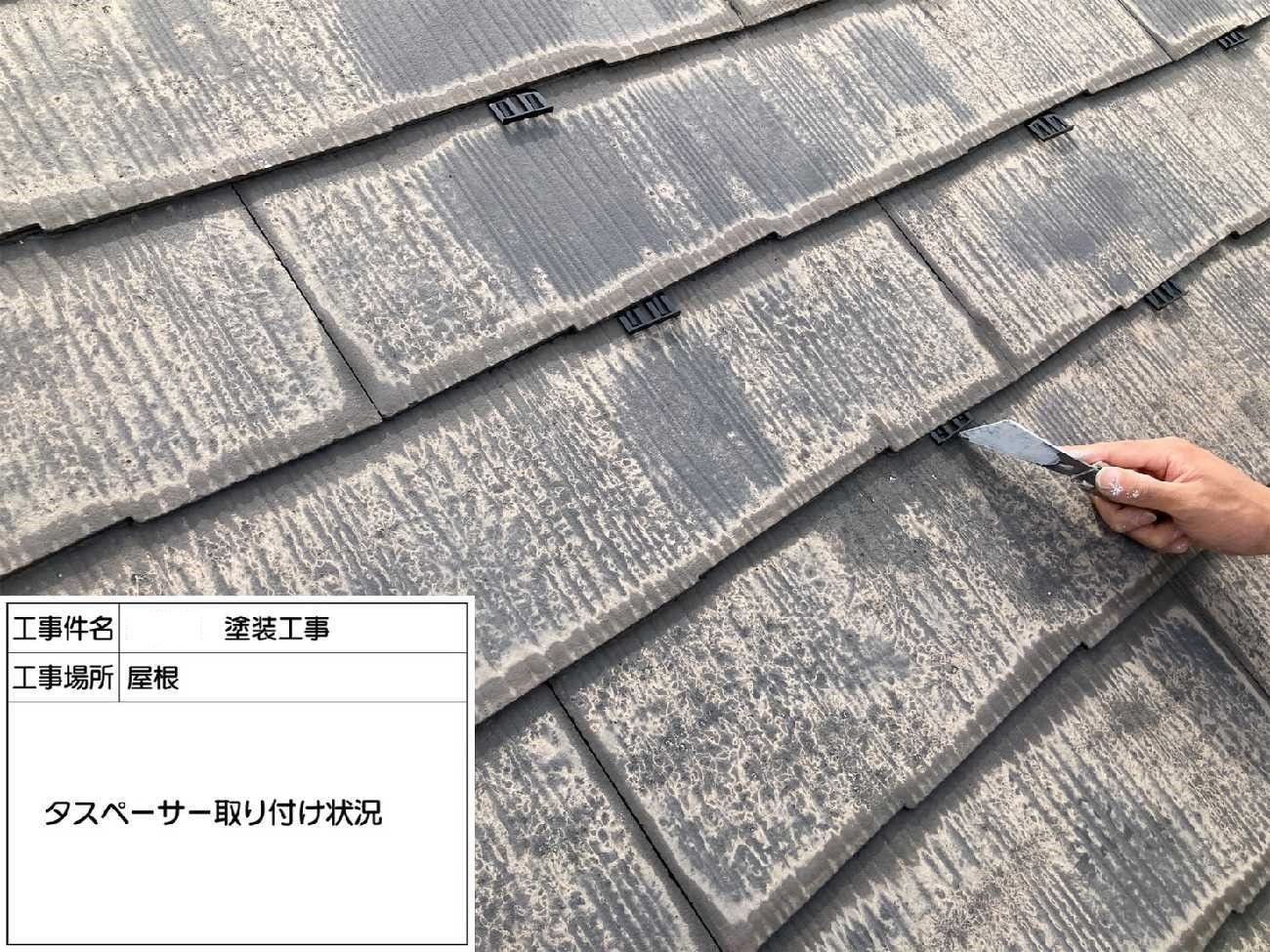 屋根はタスペーサーを取付します。 雨漏りを防ぐためにも必要な工程です。
