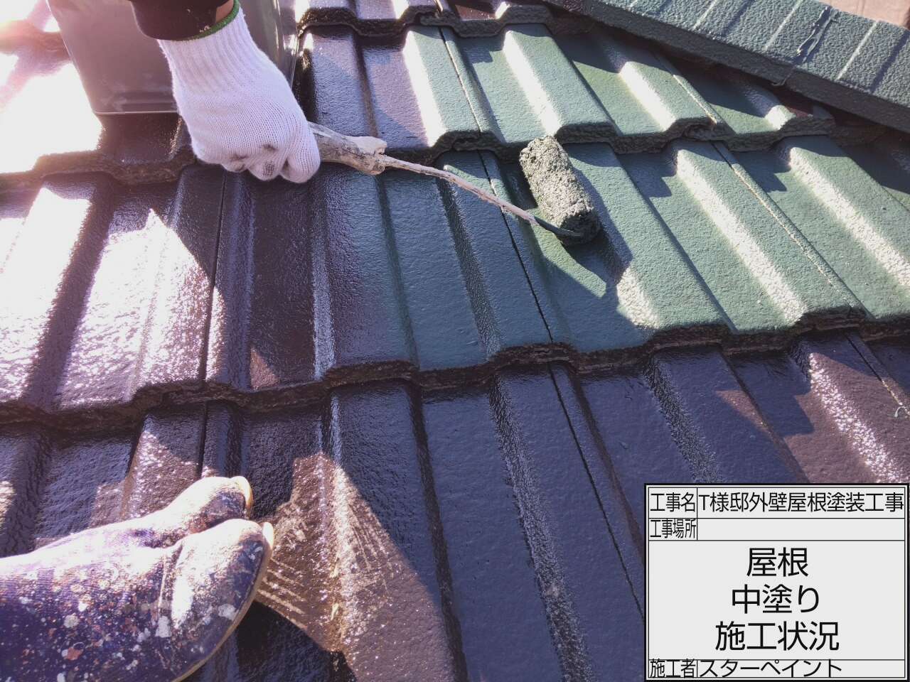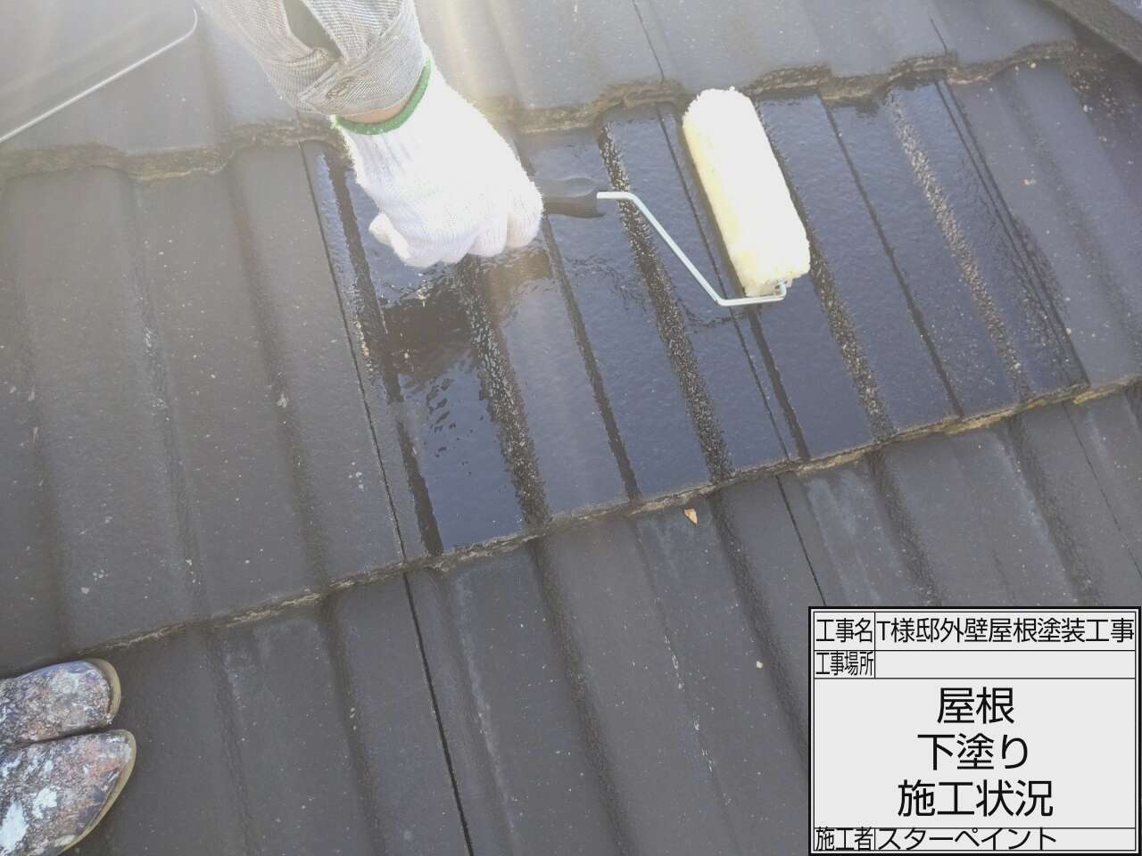 屋根も同様に下塗り・中塗り・上塗りの順に塗装していきます。