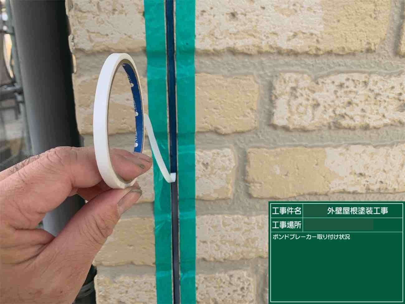 目地の底にボンドブレーカーというテープを接着させていきます。