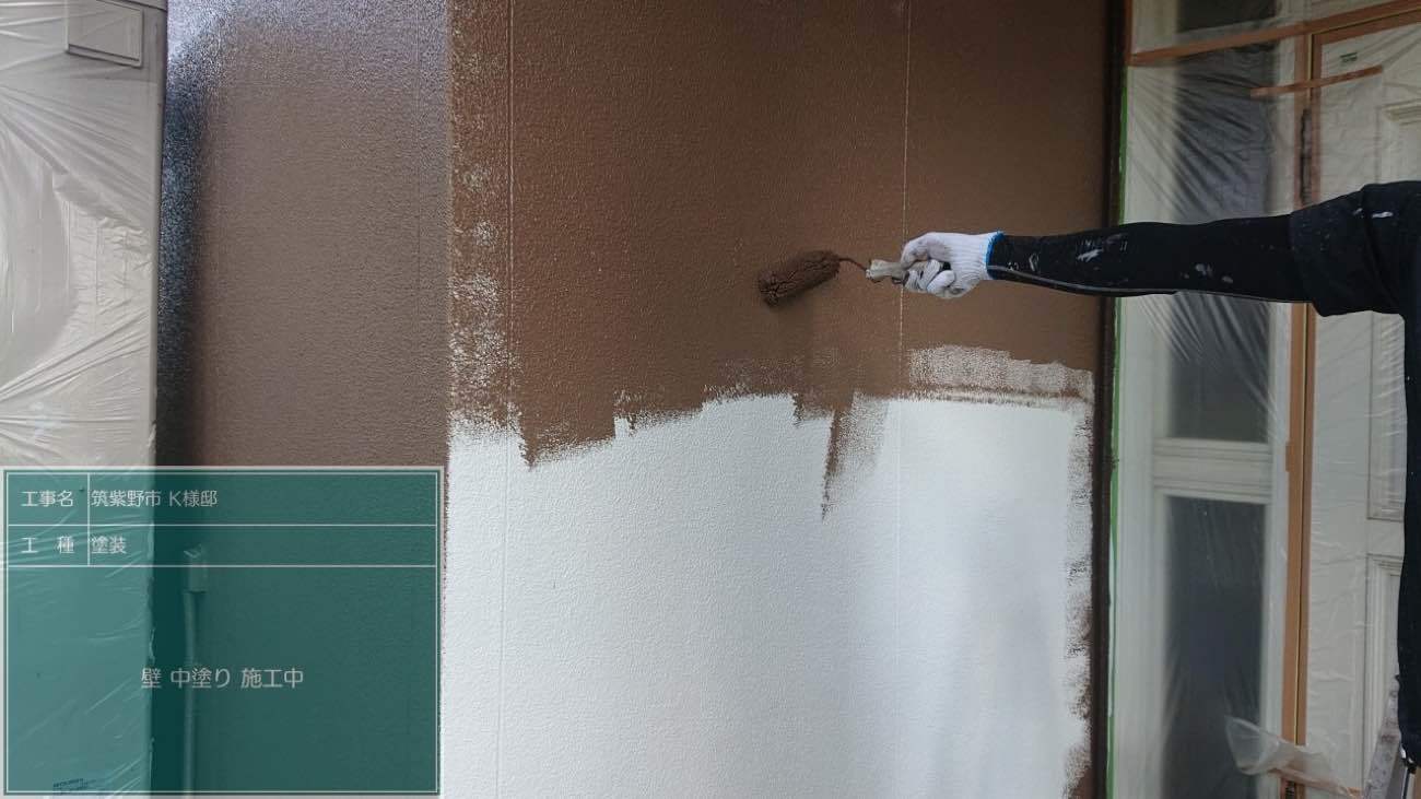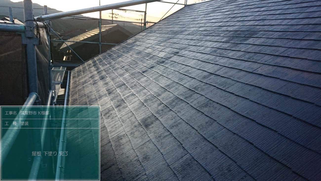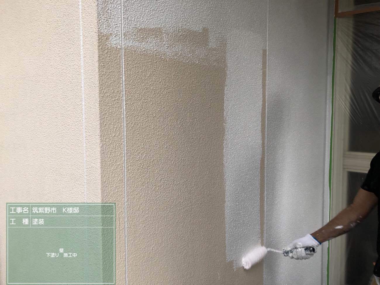 下塗りは通常1回のみの施工ですが、劣化状況によっては2回、3回と塗り重ねることもあります。今回は1回のみの施工です。