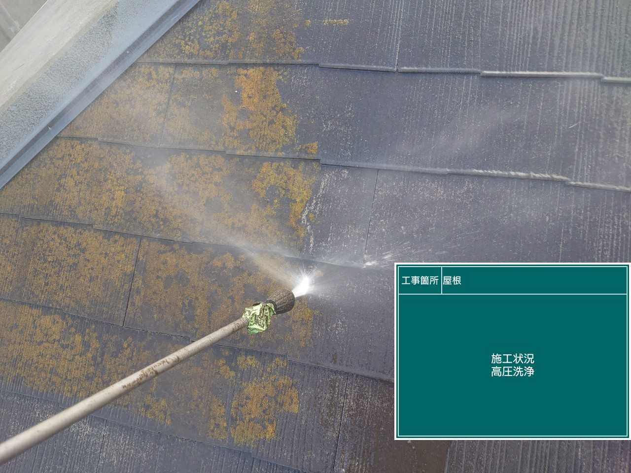 屋根の高圧洗浄作業です。