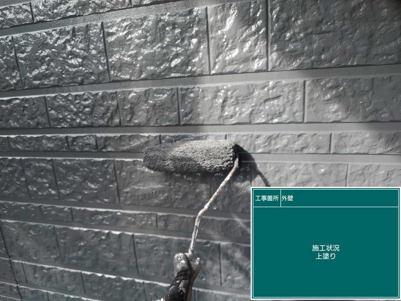 最後に上塗り作業です。綺麗にしていき最終さらに厚みをだし雨風紫外線などの外敵から下地を守ります。
