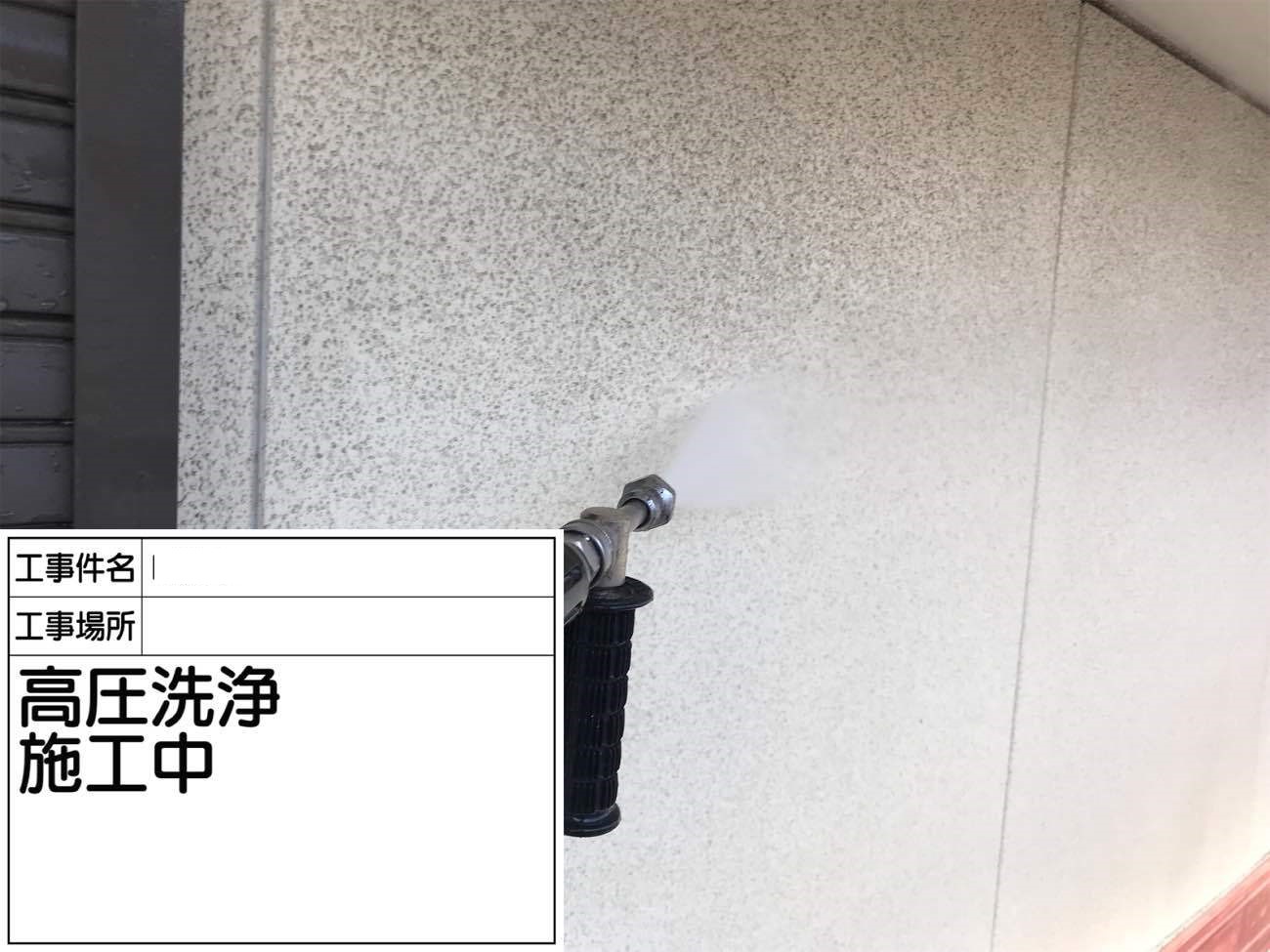 外壁も同様に、コケや汚れを洗い流していきます。
