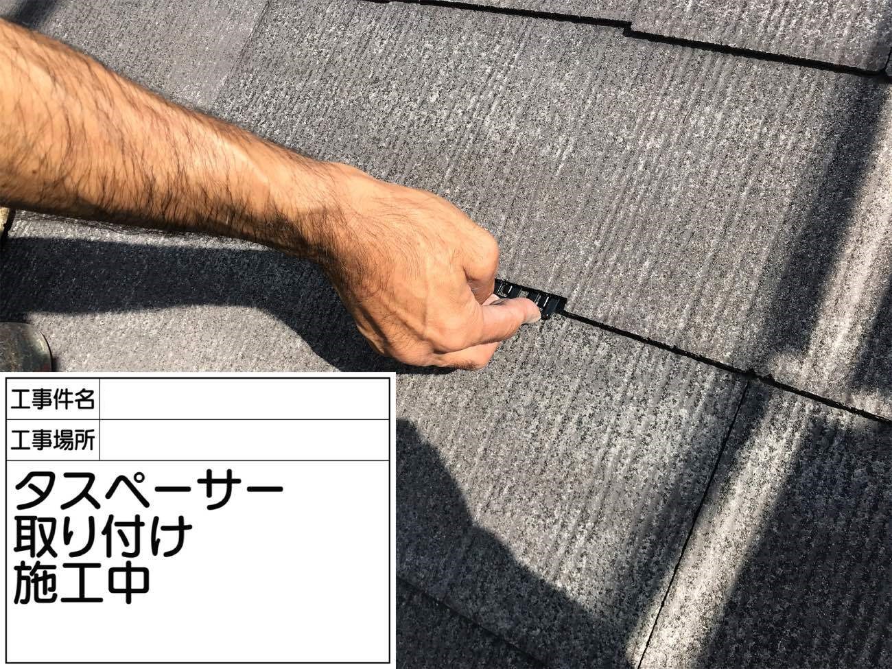 屋根の空気の出口を作るために、タスペーサーを装着していきます。