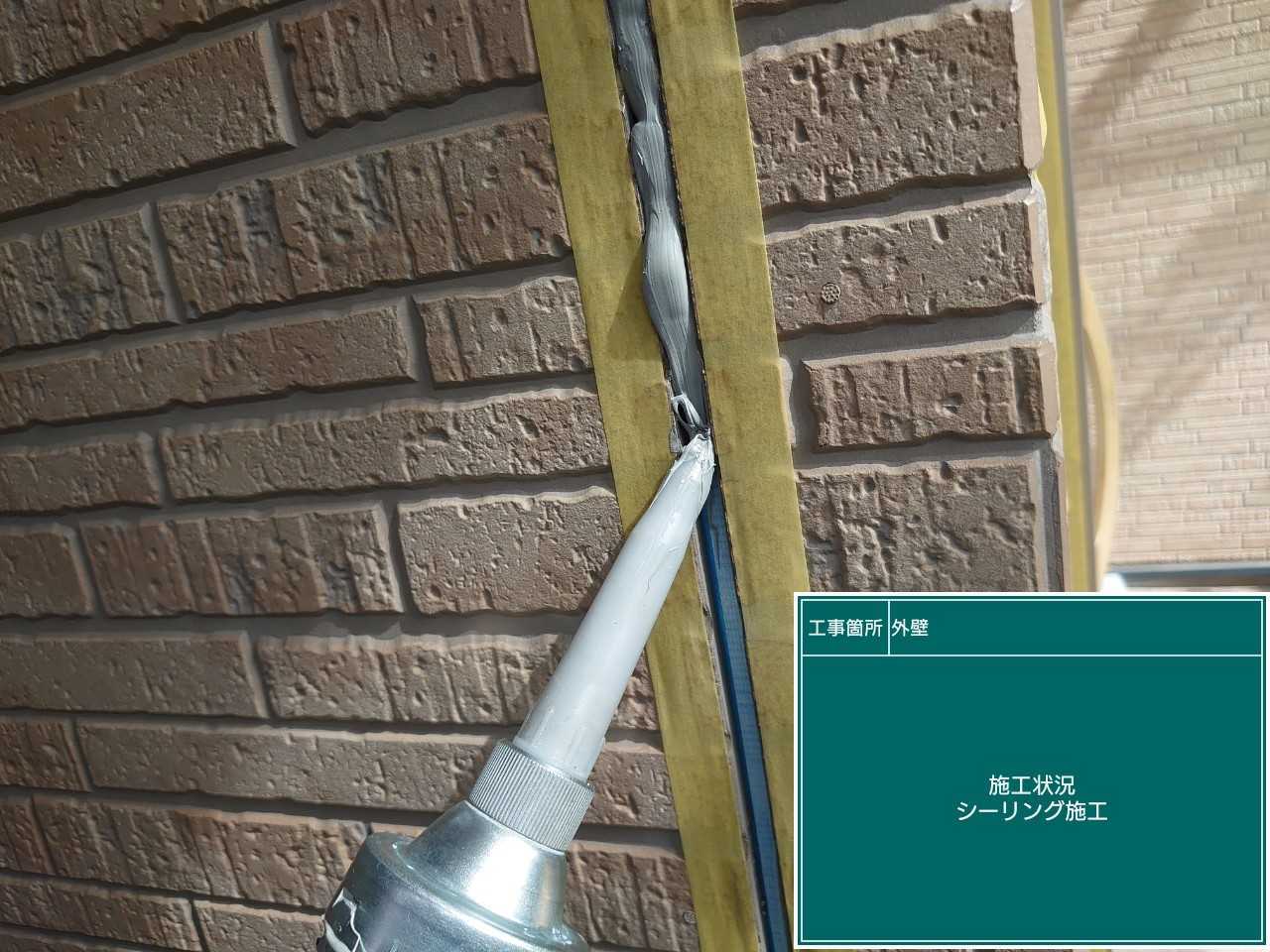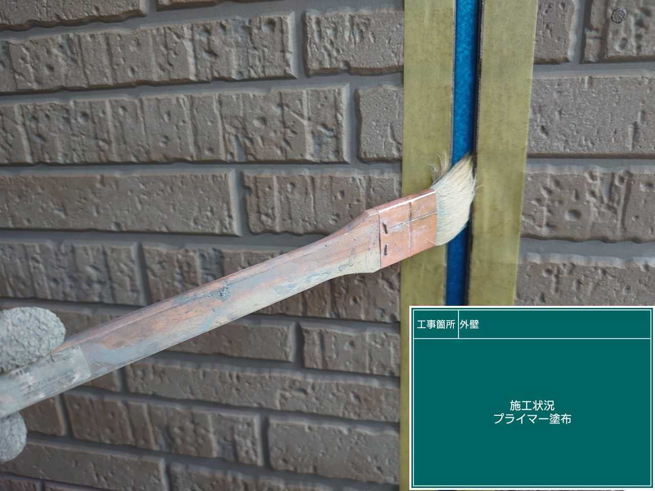 目地の側面にプライマーを塗布していきます。シーリングの密着性を高めます。