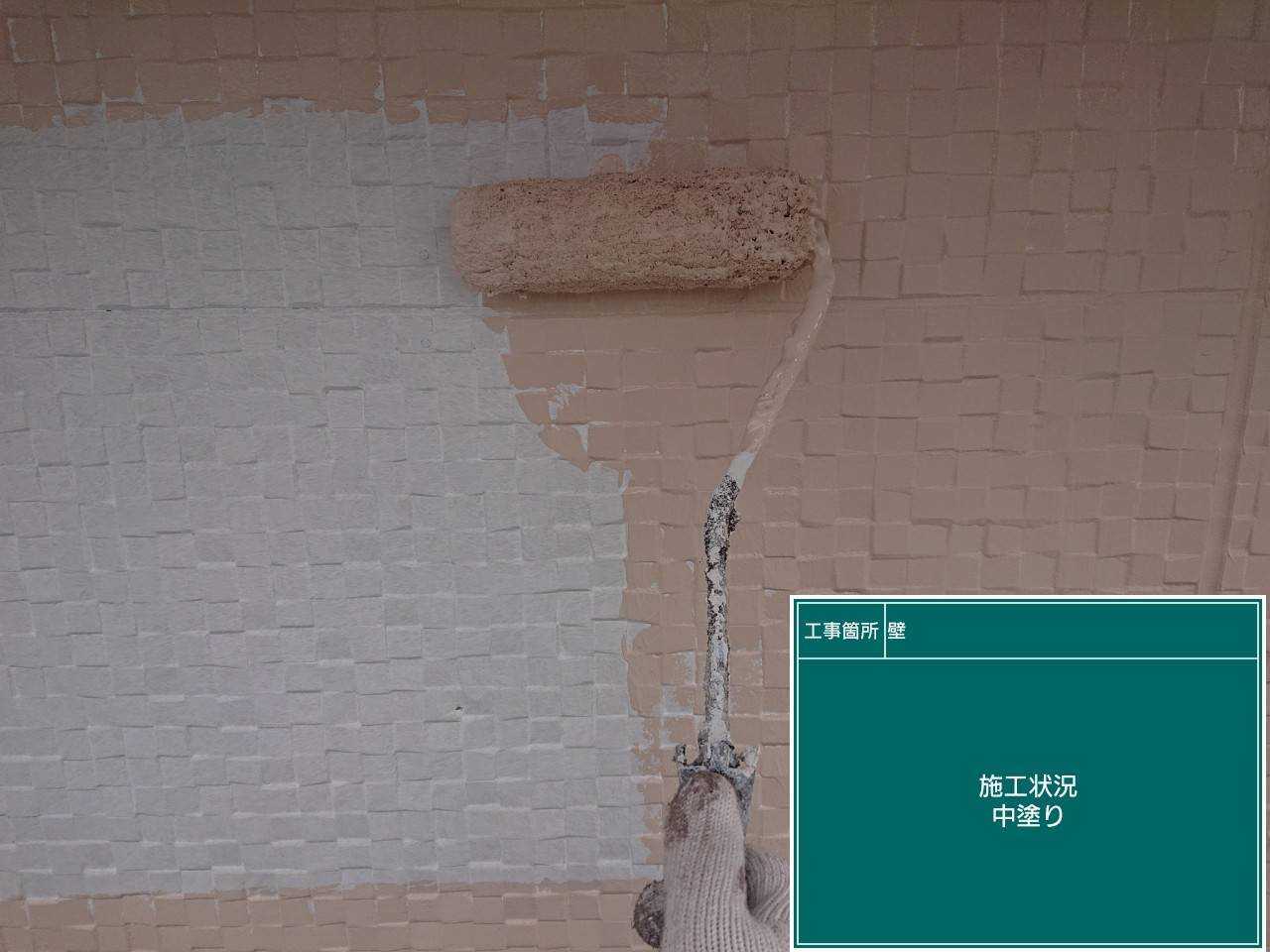 次に中塗り作業です。中塗りで最終の上塗り作業の補強を行うとともに厚みを出し下地を守ります。