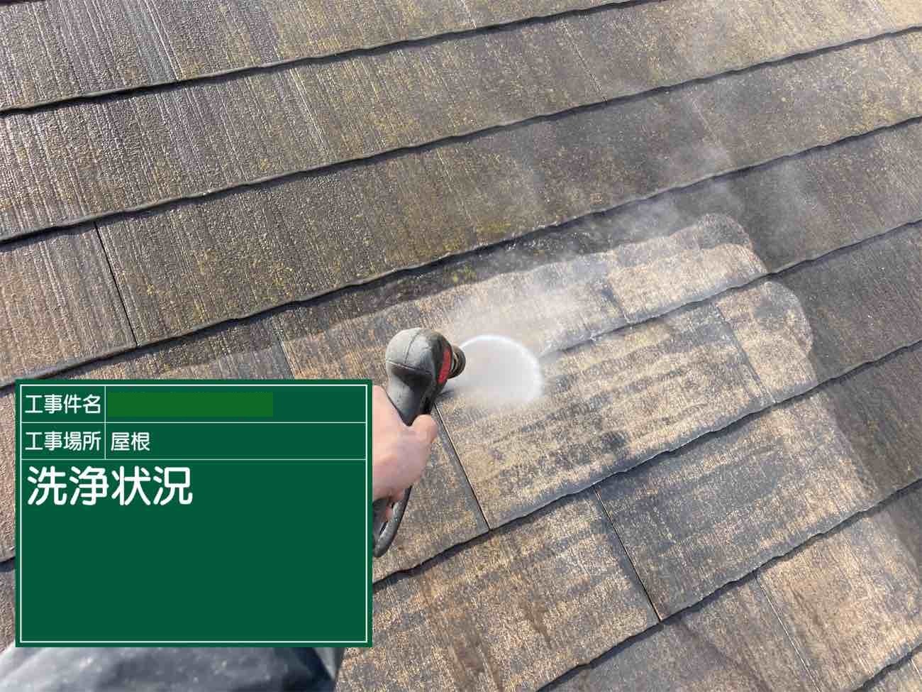 屋根は紫外線や雨が直接当たるので、汚れが沢山付着しております。 しっかり高圧洗浄機を用いて、汚れを洗い流します。