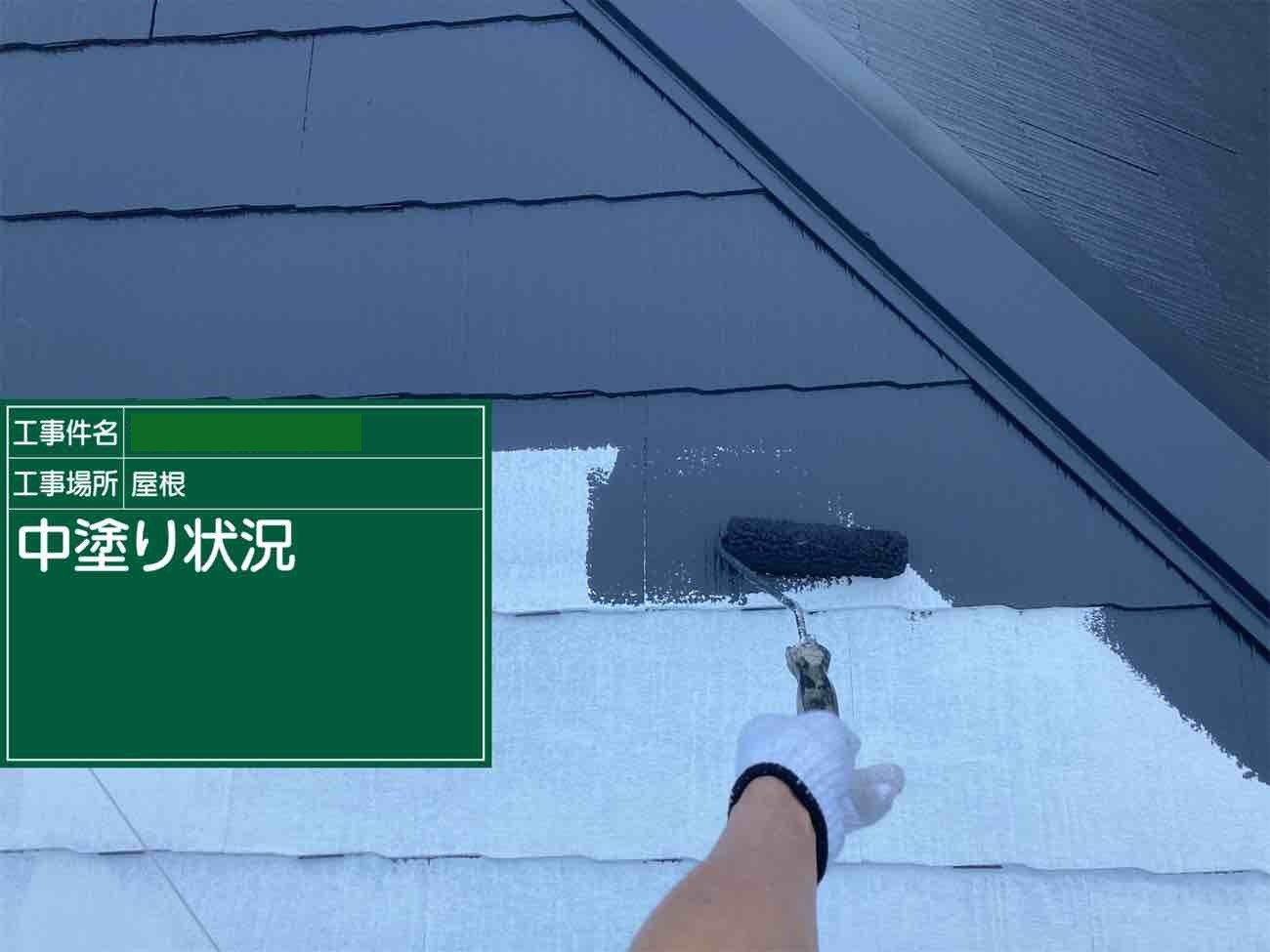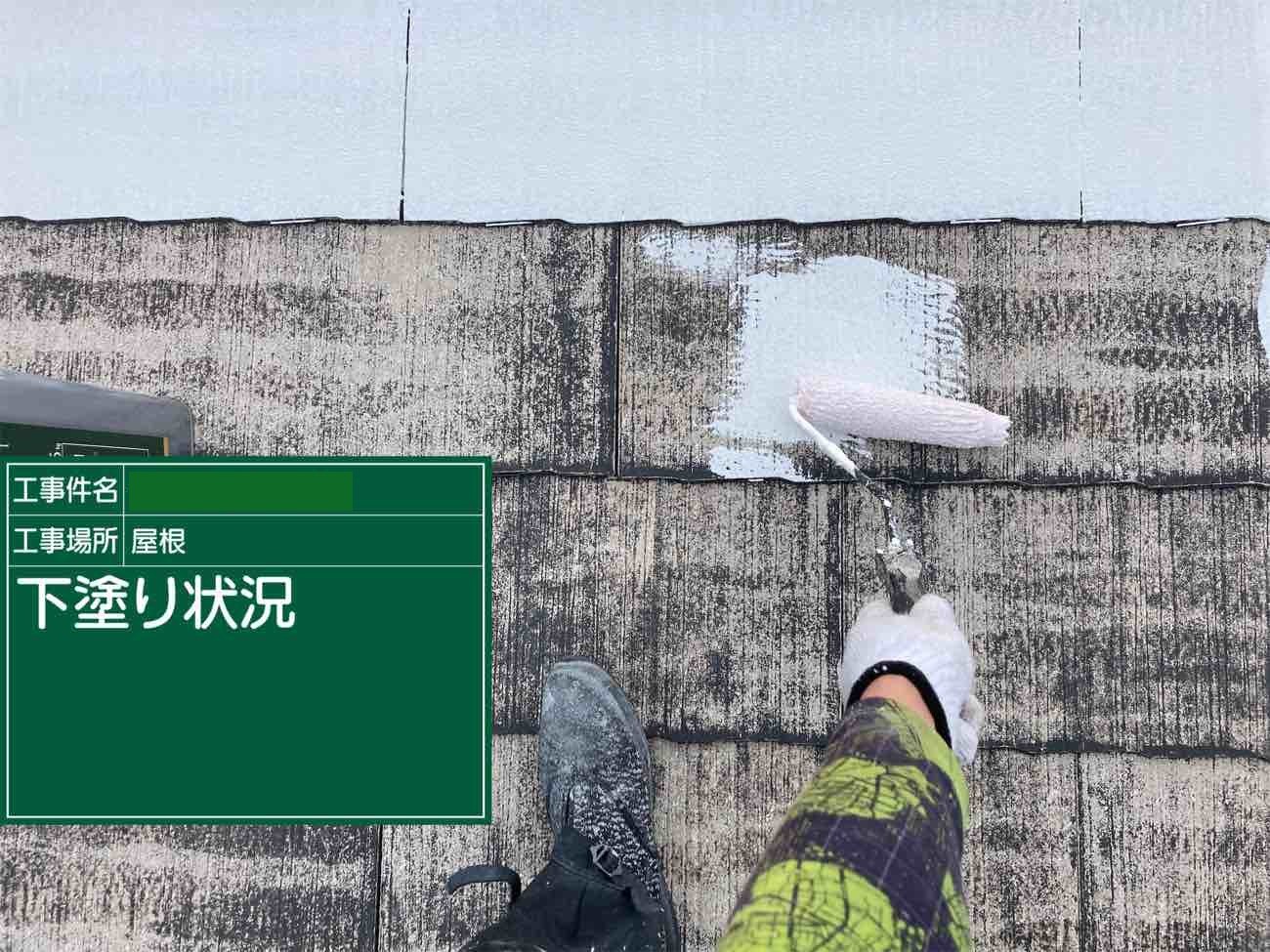 屋根は、下塗りから行います。 下塗りをしっかり塗ることで塗膜の剥離を防ぎます。