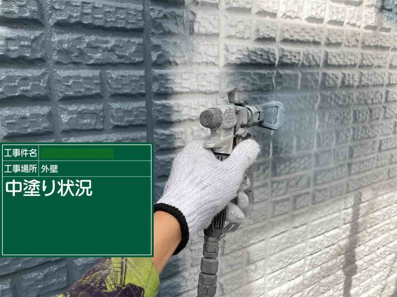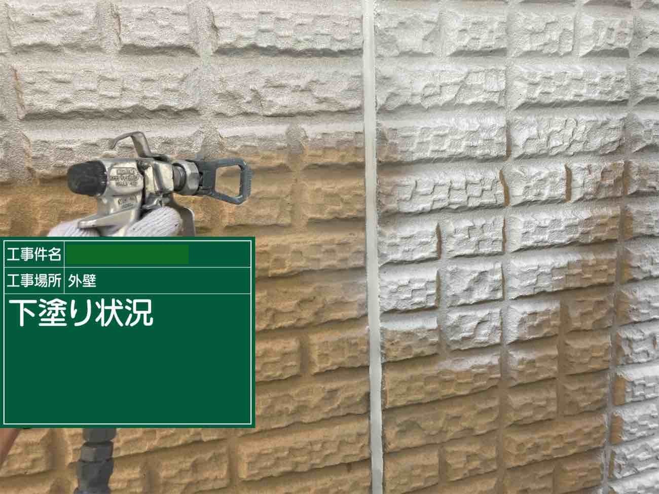 下塗りで一旦、外壁を真っ白にします。 次に色を入れていきます。