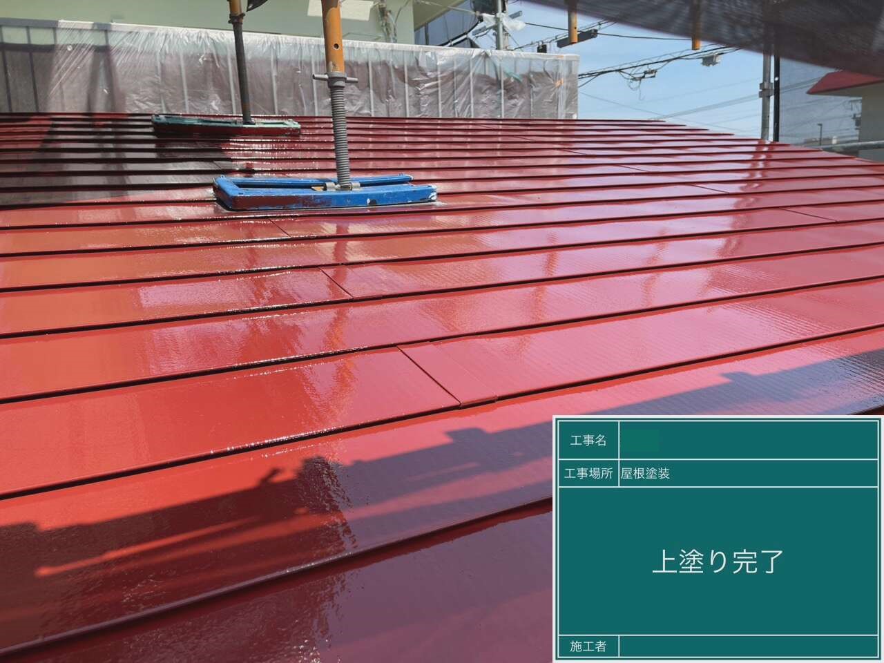 屋根完成です! 綺麗な色味が照らされて光ってますね!