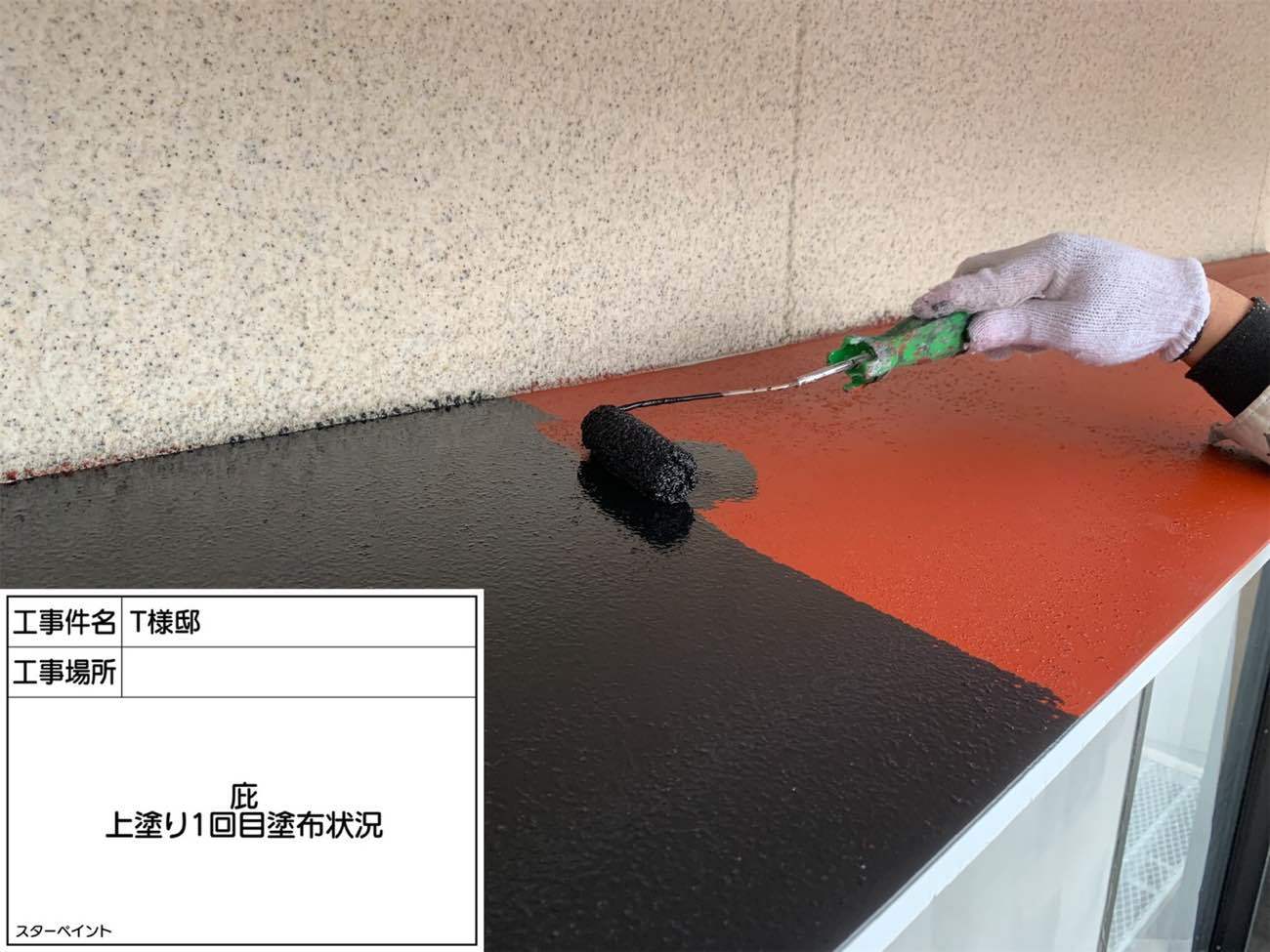 まずは、上塗り一回目です。 ローラーを使い、細かい部分まで拘り抜きます。