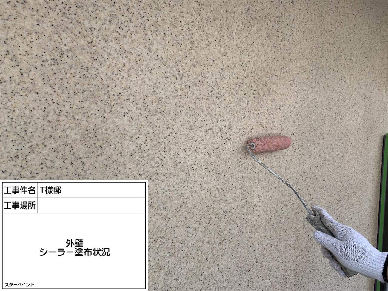劣化した外壁は塗料の吸収が激しいので、まずはシーラーを塗ります。