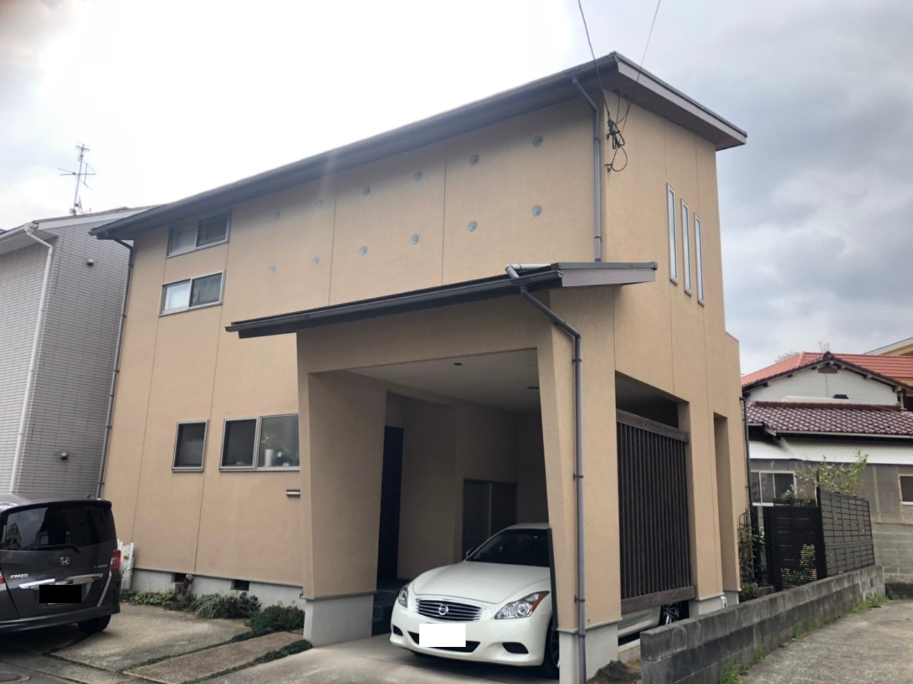 外壁の色褪せやヘアークラックが複数確認できる状態でした。 今回は、見た目の改善だけでなく、今後も安心してお住まいいただけるよう、 下地処理から丁寧に施工を行...
