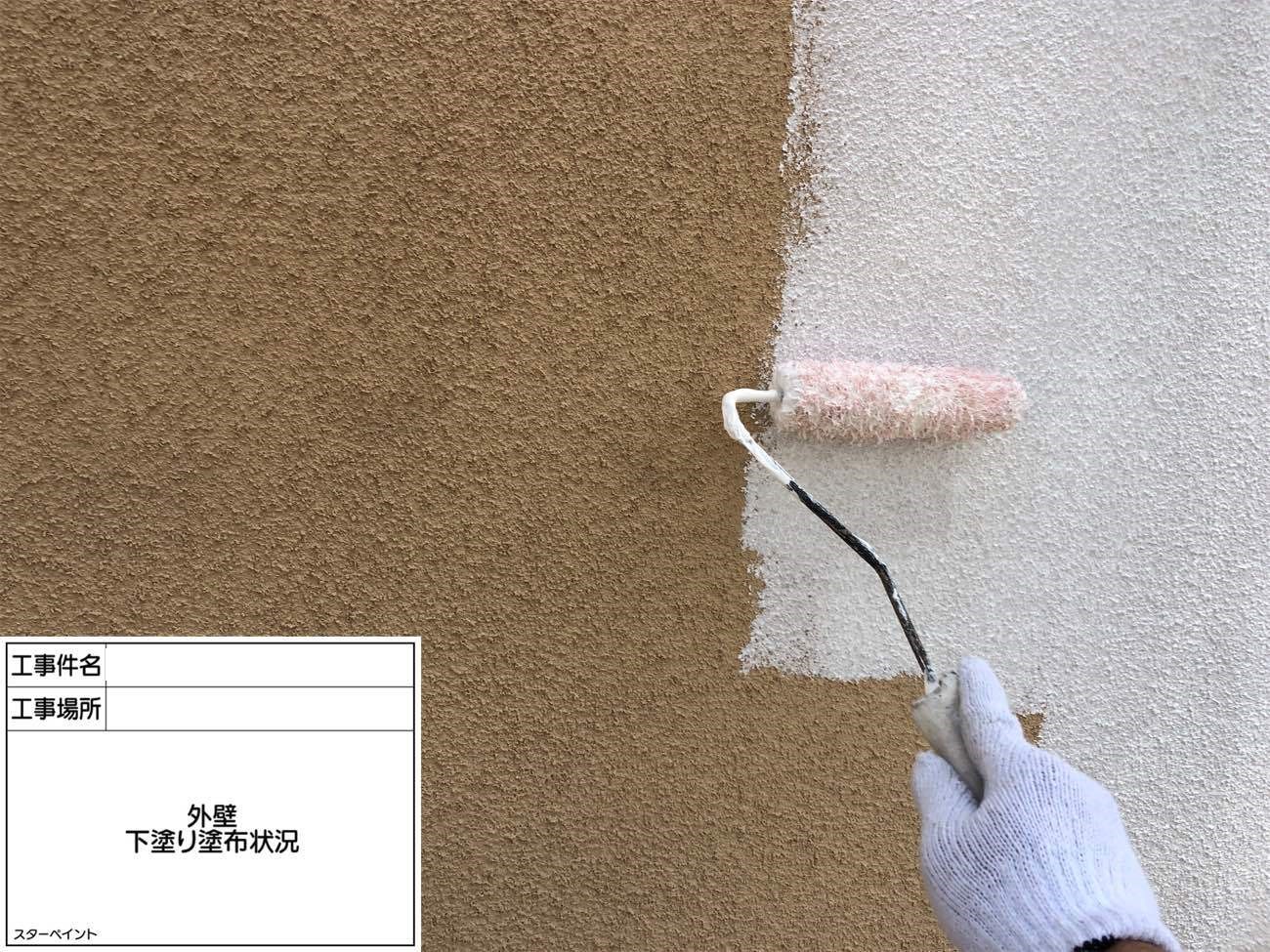 下塗りで下地を整え、上から塗る塗料の密着度を高めます。