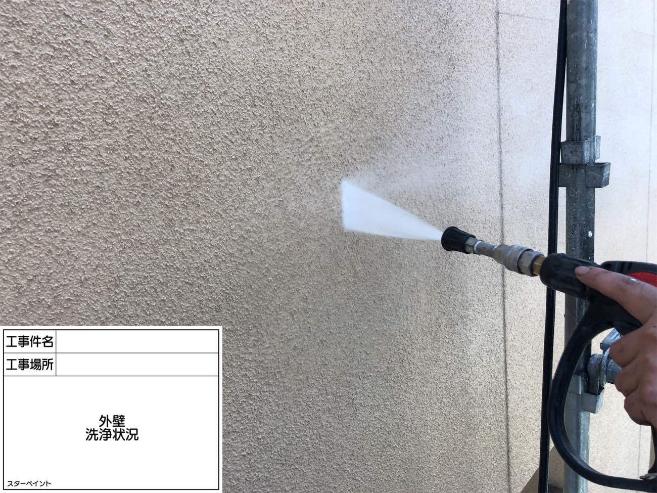 外壁はコケやカビがついているので、こちらも同様に洗い流します。