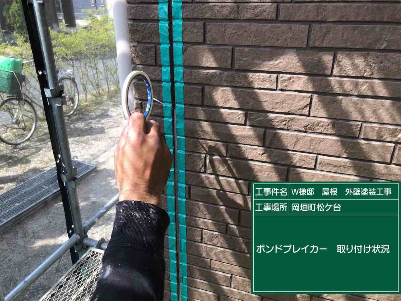 次に目地の底にボンドブレーカーを接着していきます。そうすることで3面接着をなくし耐震性を高めます。