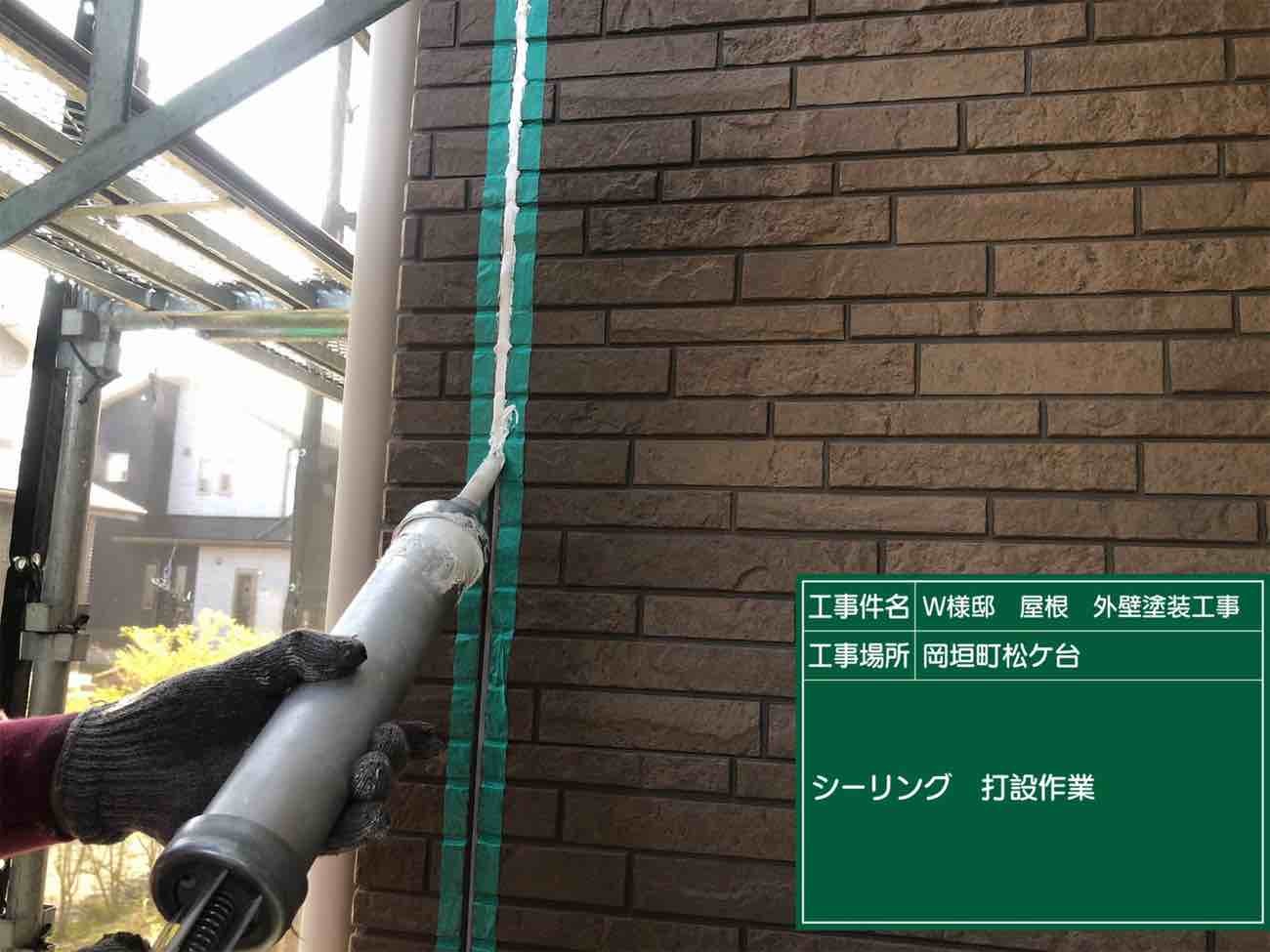 外壁の目地にあるシーリングを打ち替えて行きます。