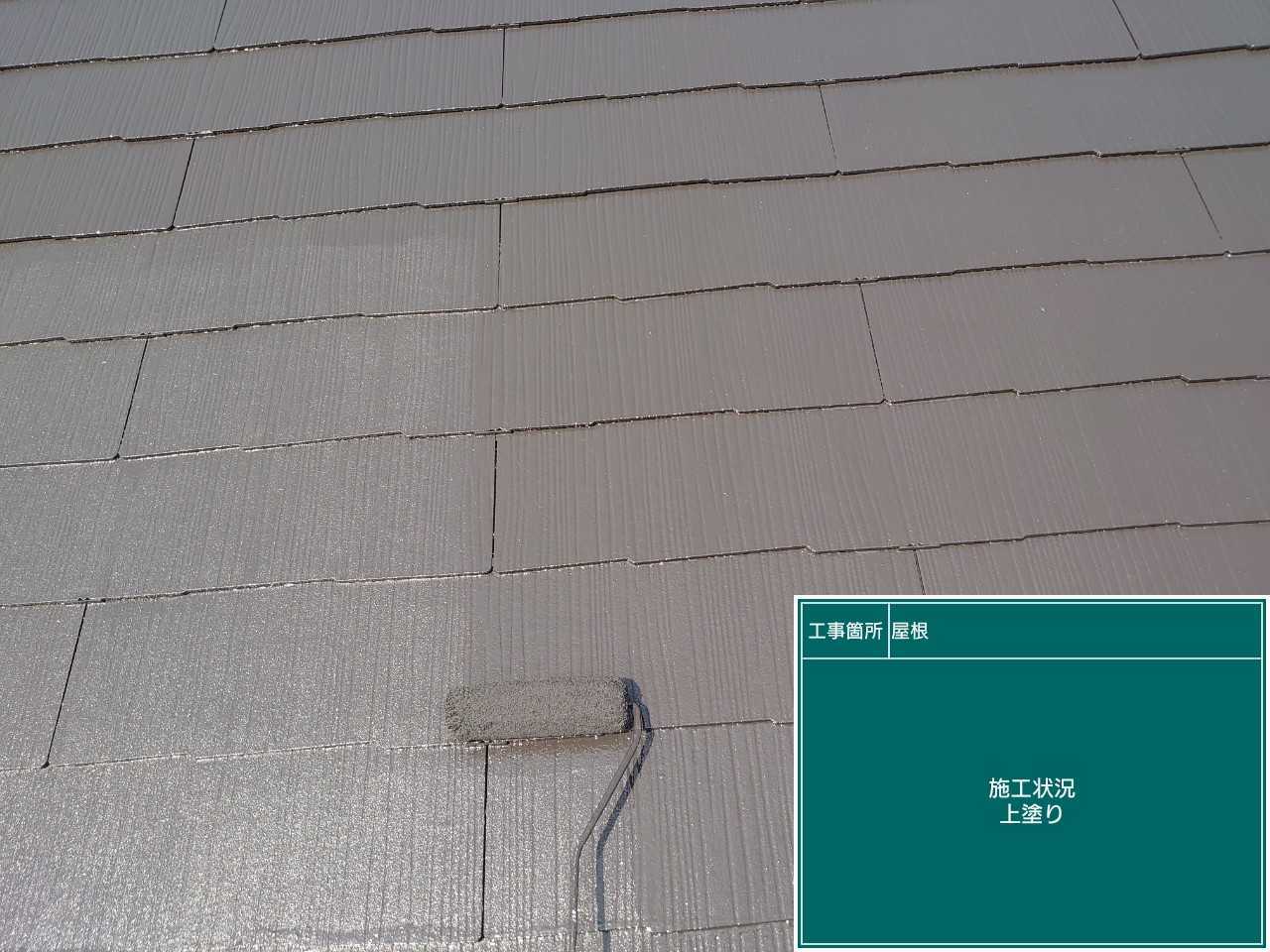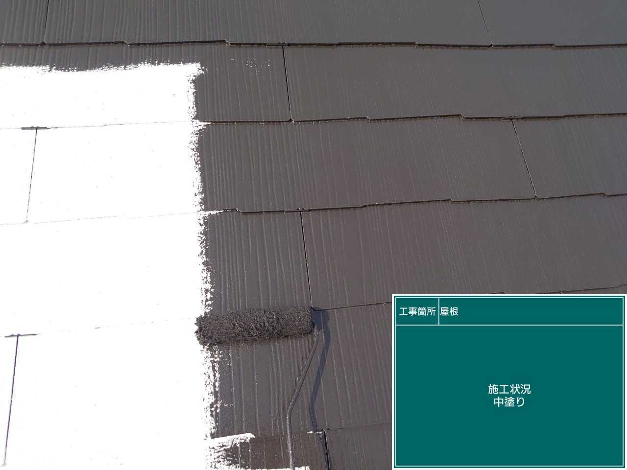 次に中塗り作業です。屋根も紫外線などを浴びてしまうのでしっかり塗装を行います。