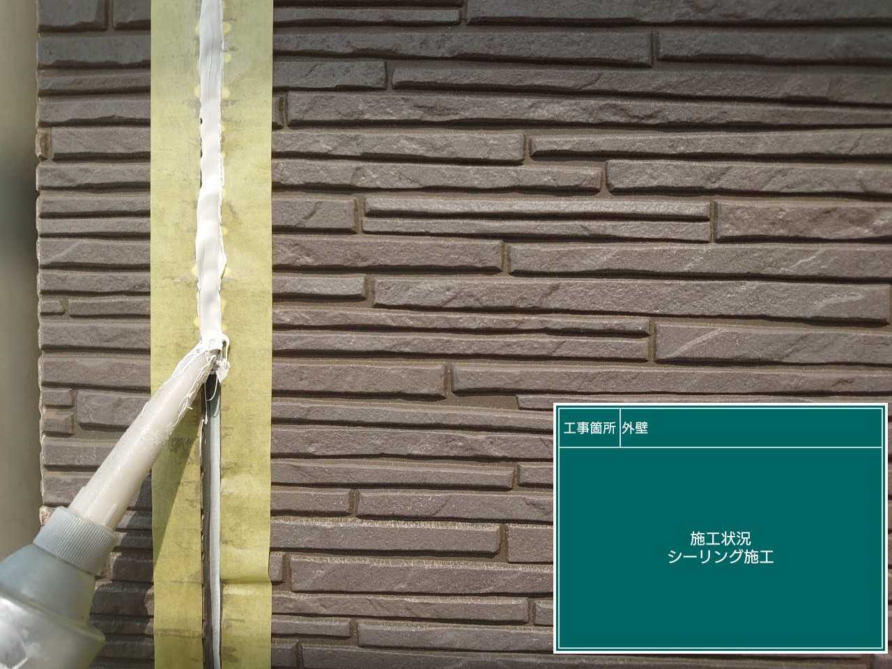 シーリングを充填していきます。目地に沿って充填していきます。