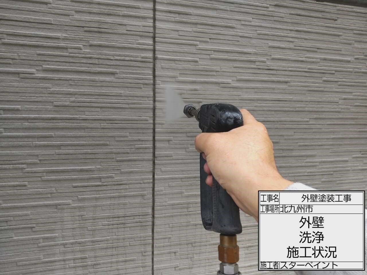 外壁の洗浄作業を行います。