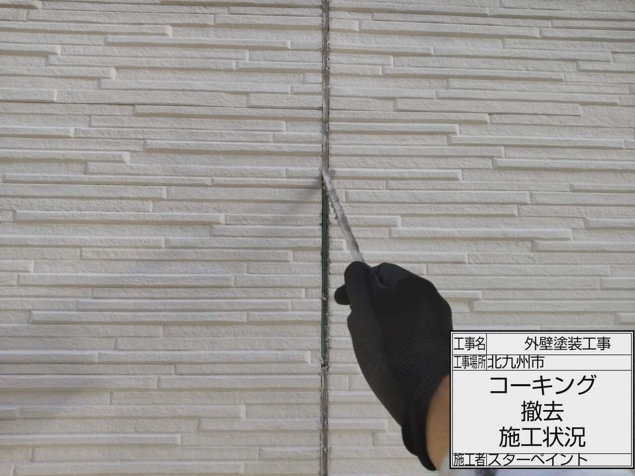 目地のシーリングを撤去していきます。カッターなどを使用し撤去します。
