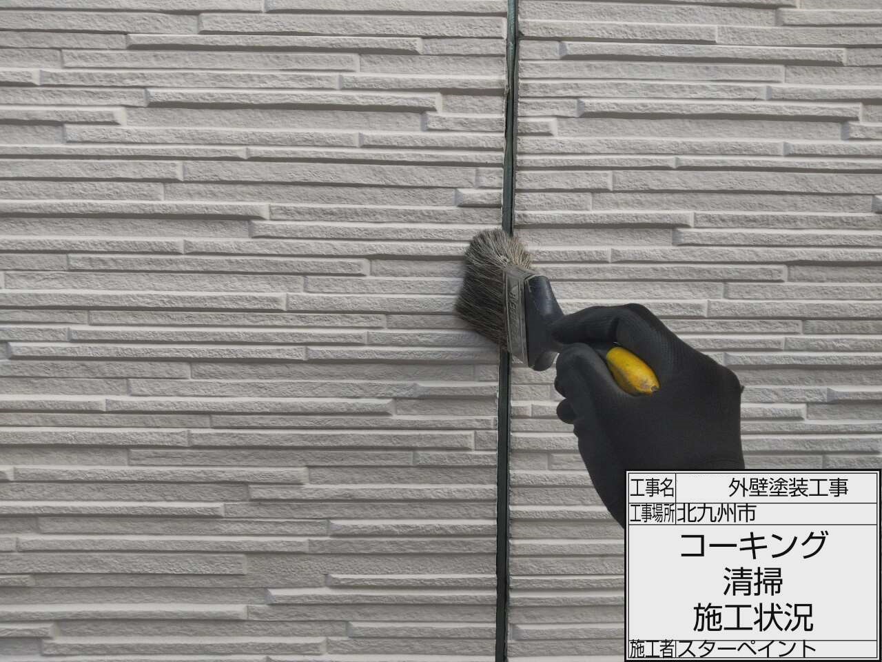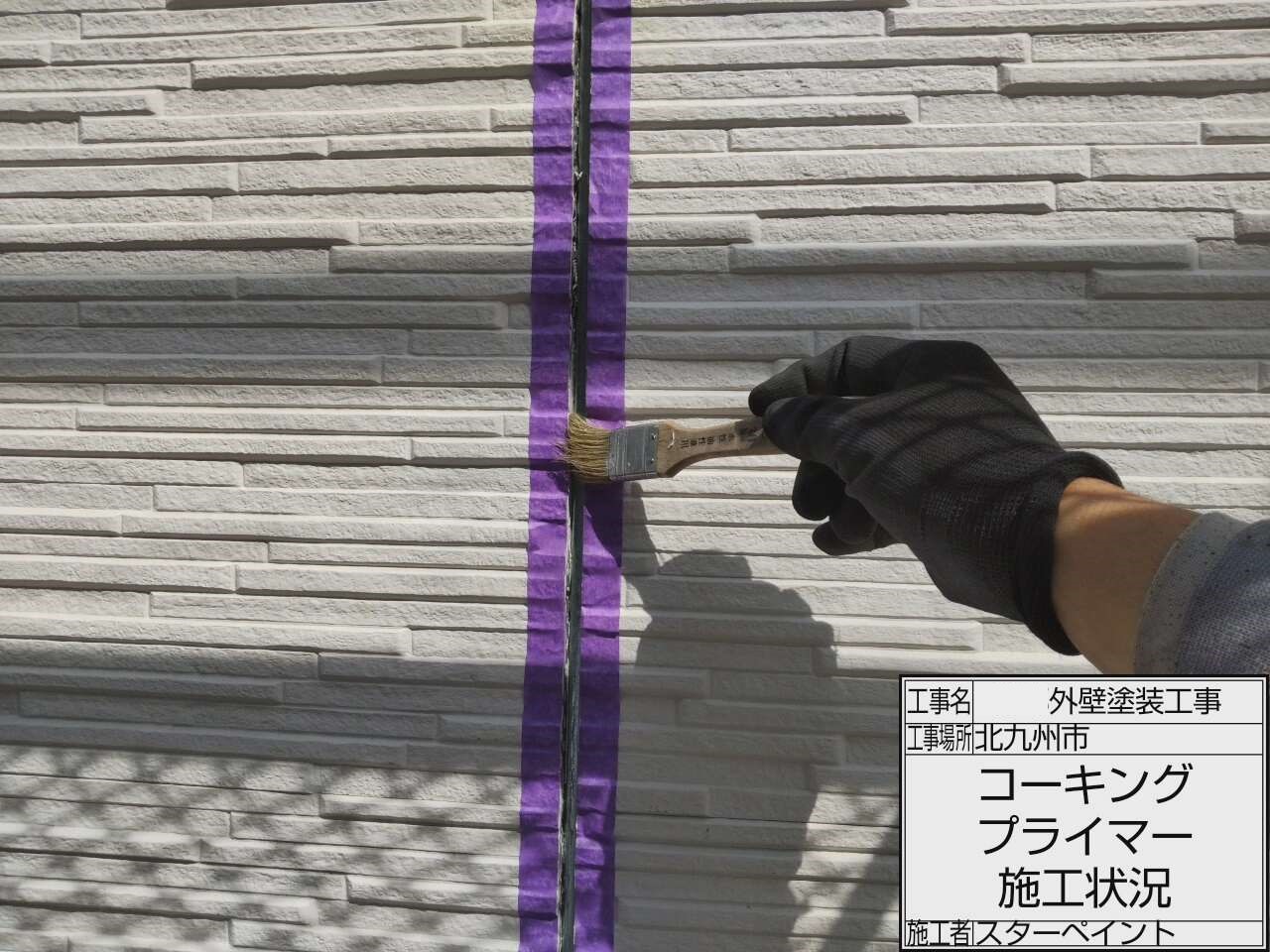 目地にプライマーを塗布します。接着性を高めていきます。