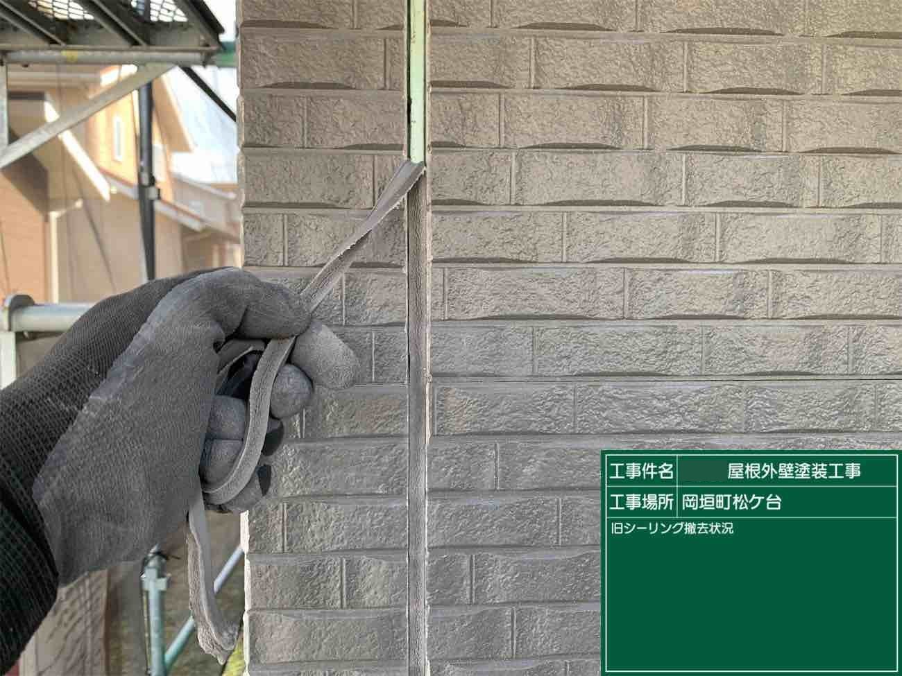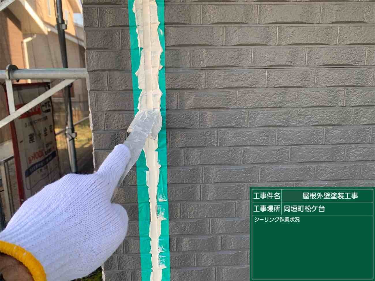 目地の側面にプライマーという接着作用のあるものを塗布していきます。