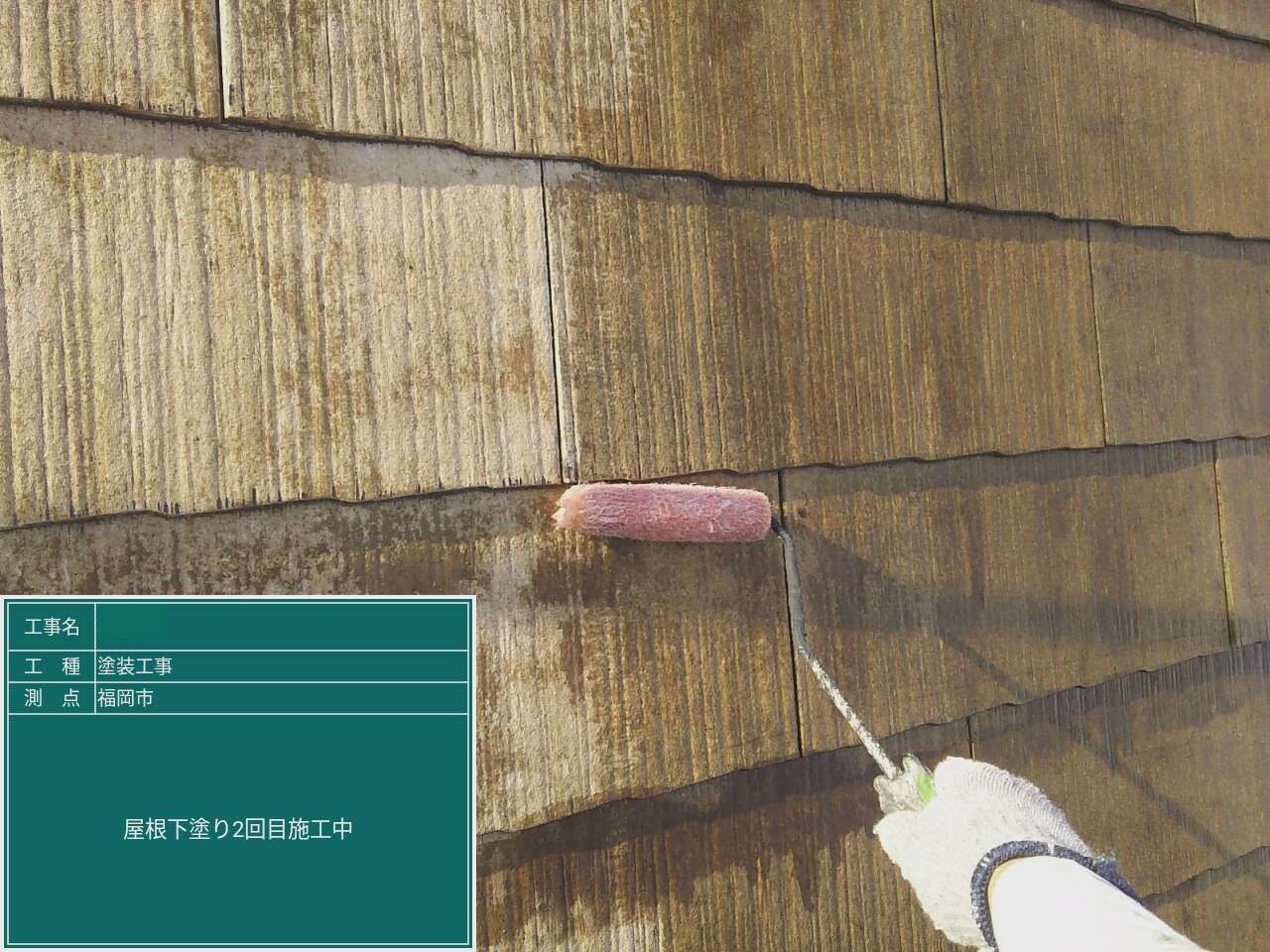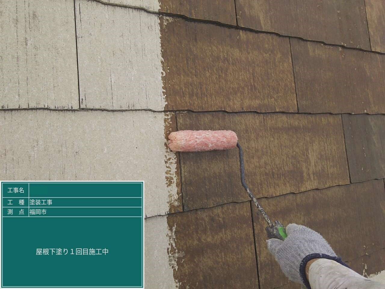 屋根の下塗り一回目です。 下地をしっかり整えていきます。