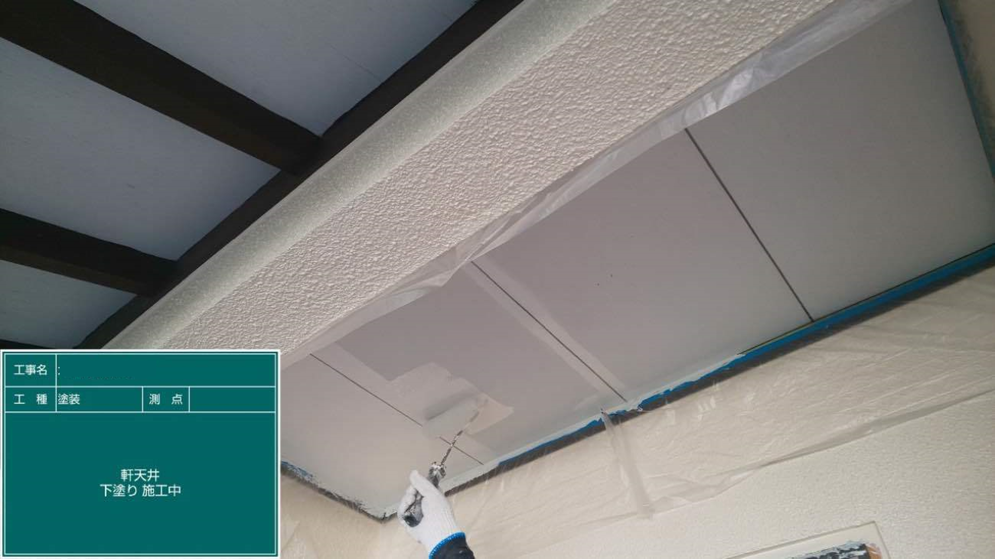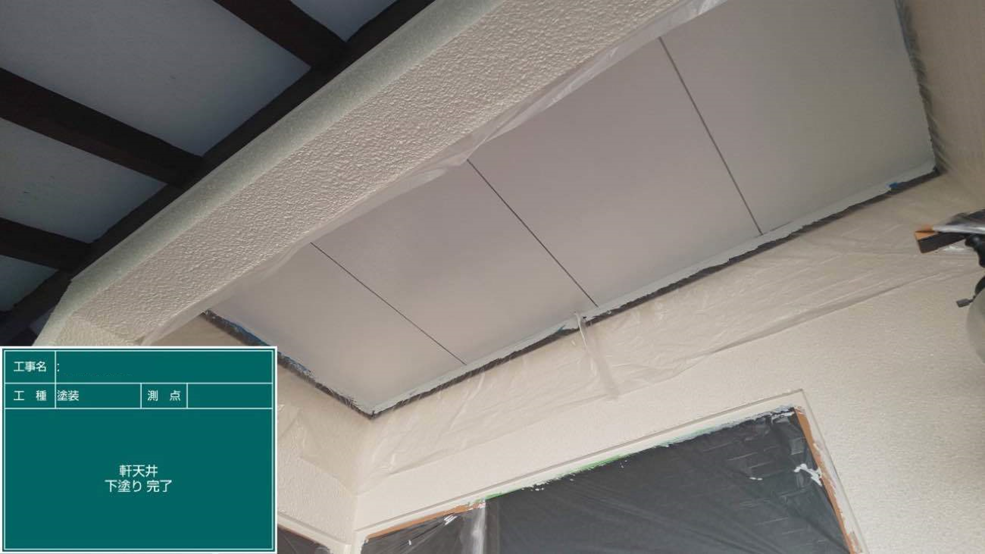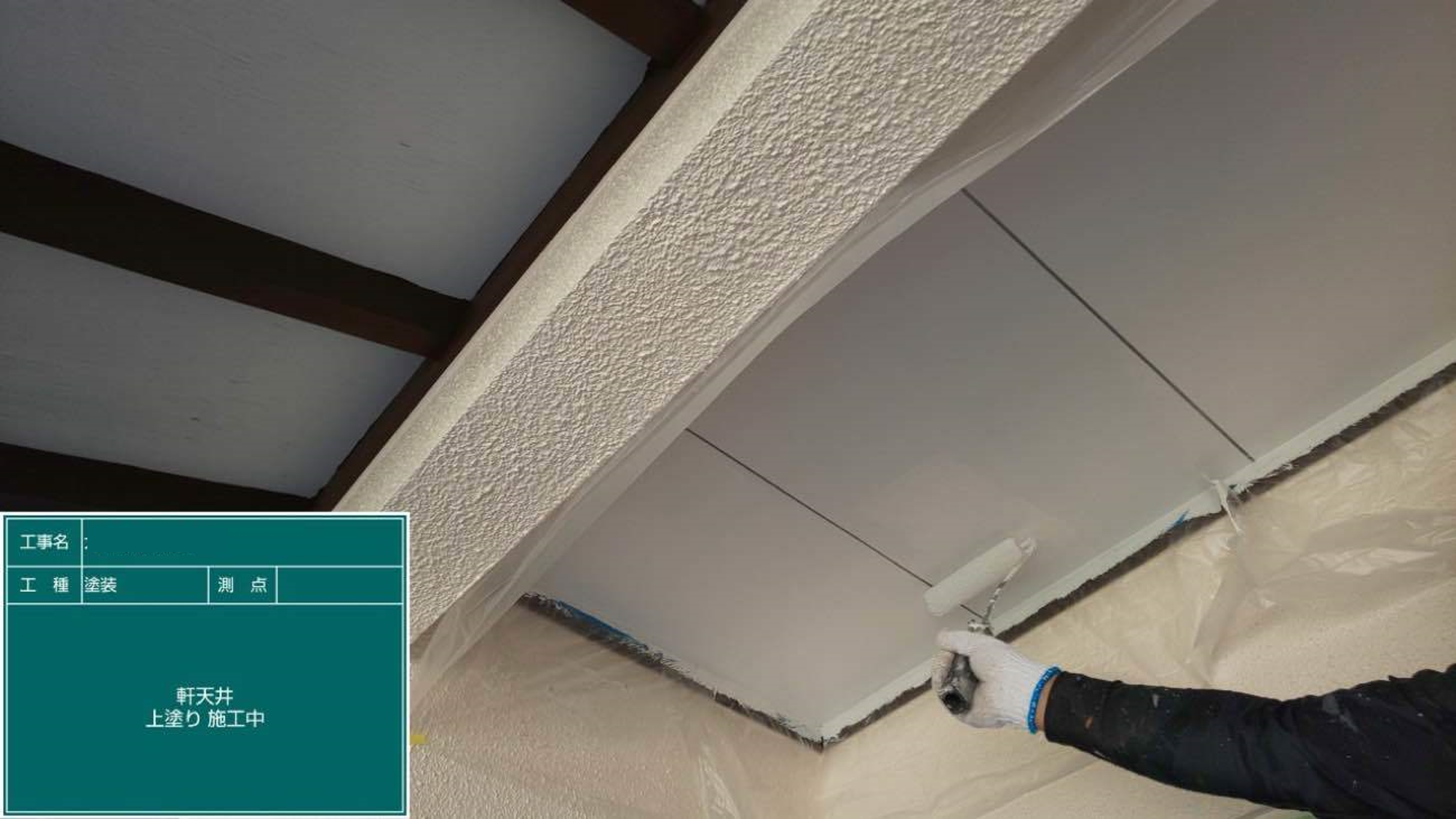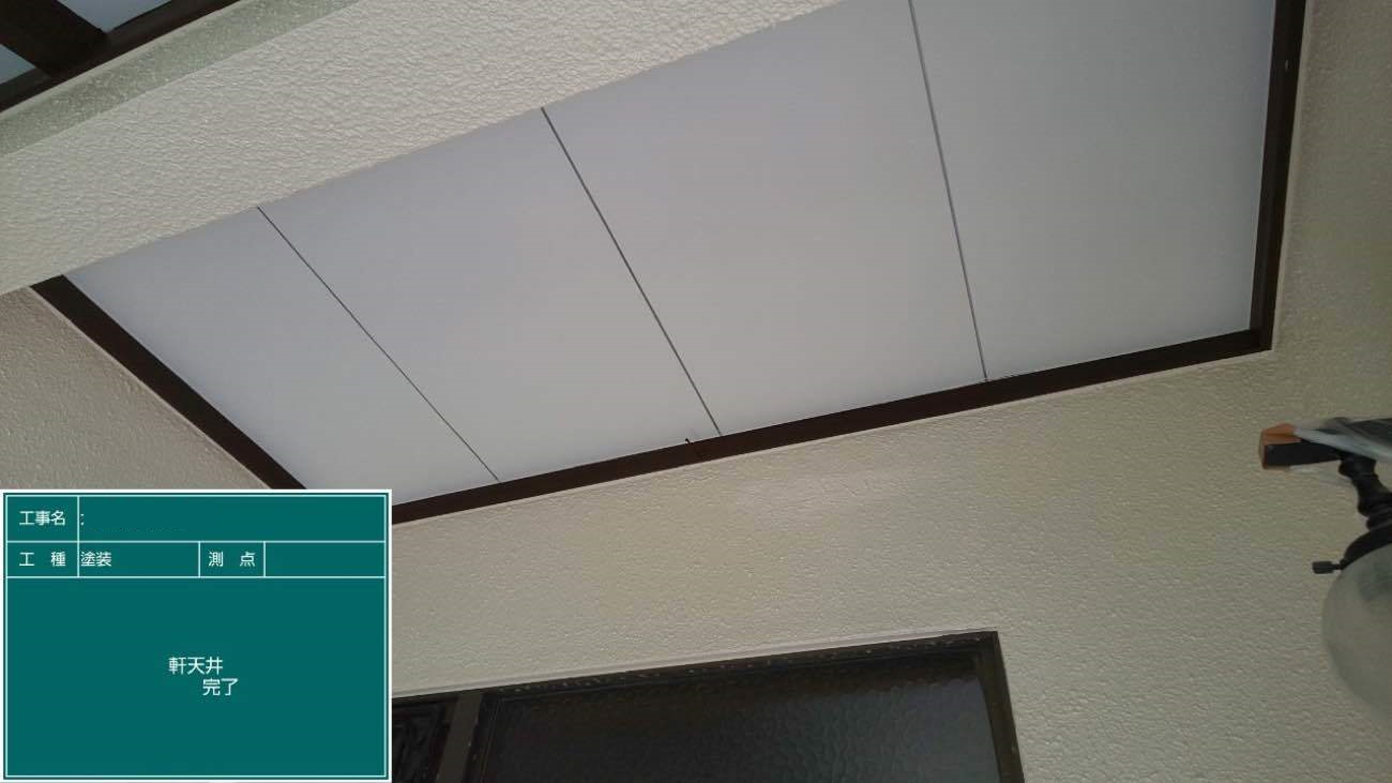 軒天の塗装は塗料を2回塗り重ねて完了となります。まずは1回目。