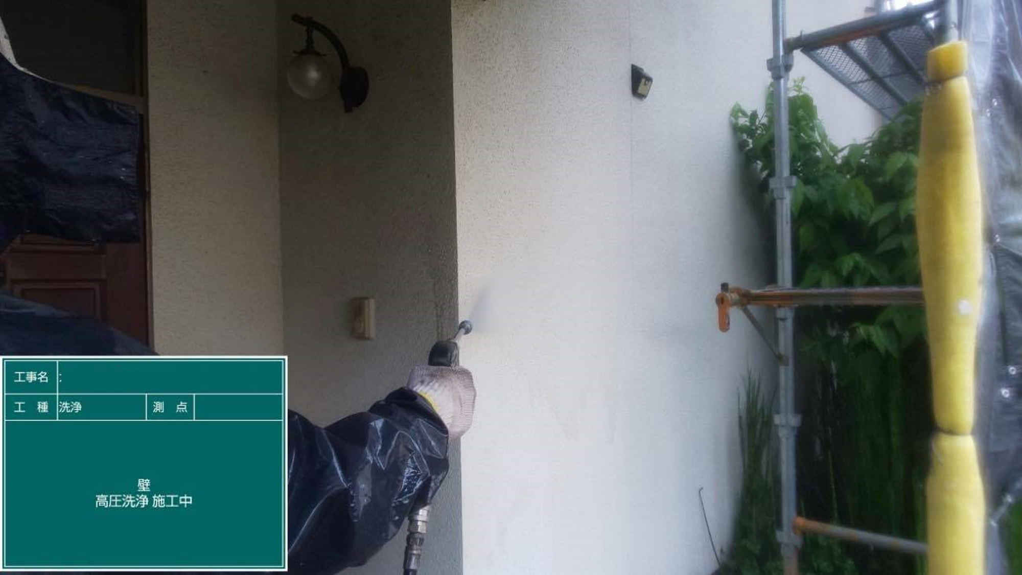 塗装箇所の洗浄を行っていきます。強力な機械を使用して汚れや苔などを落としていきます。