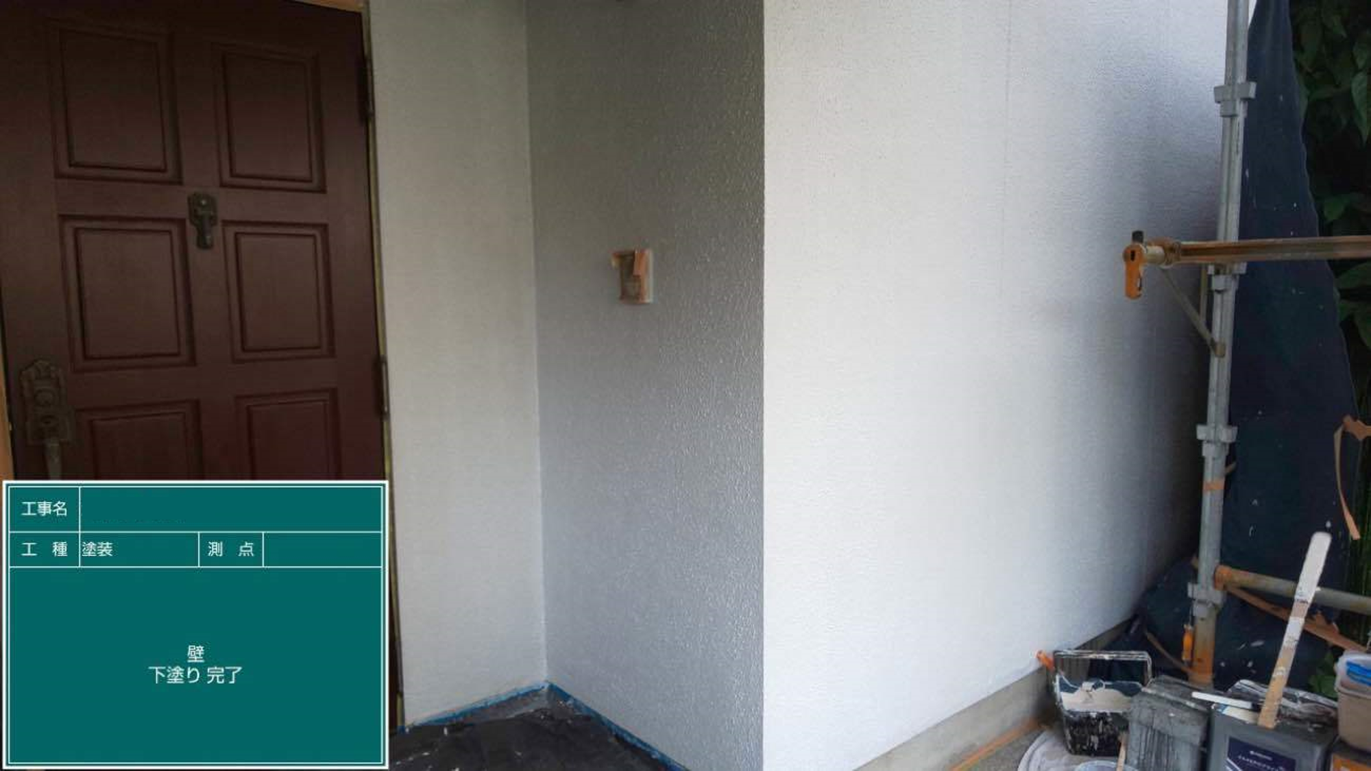 まずは下塗りです。今回お色が少々見えにくいですが、下塗り塗料は白色になります。