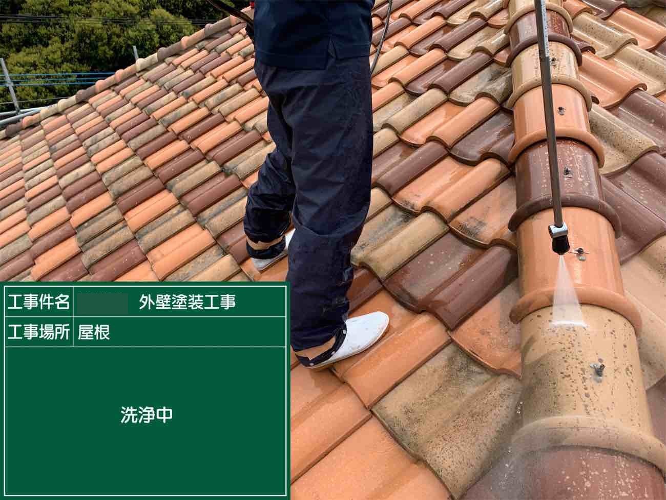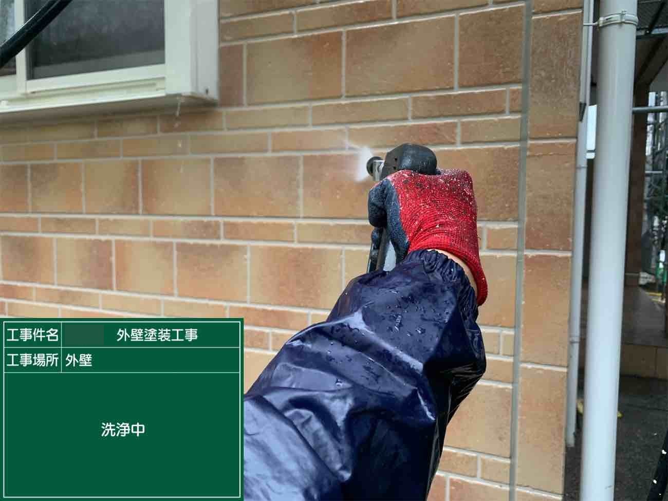 外壁も同様に洗浄していきます。汚れを一掃していきます。
