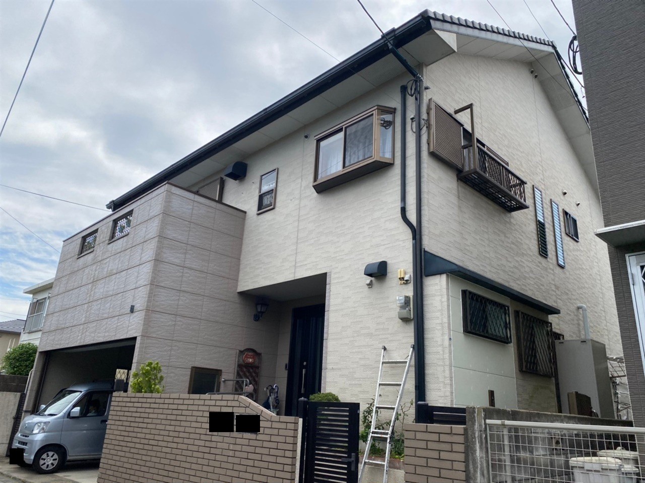外壁の色褪せやヘアークラックが複数確認できる状態でした。 今回は、見た目の改善だけでなく、今後も安心してお住まいいただけるよう、 下地処理から丁寧に施工を行...