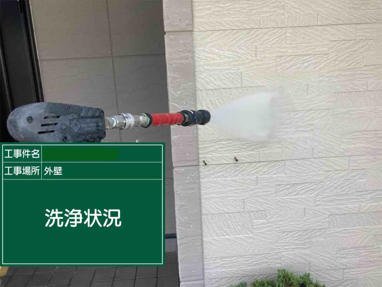 外壁には沢山の汚れがついています。 しっかり洗い流すことで、塗料の浸透性も変わります。