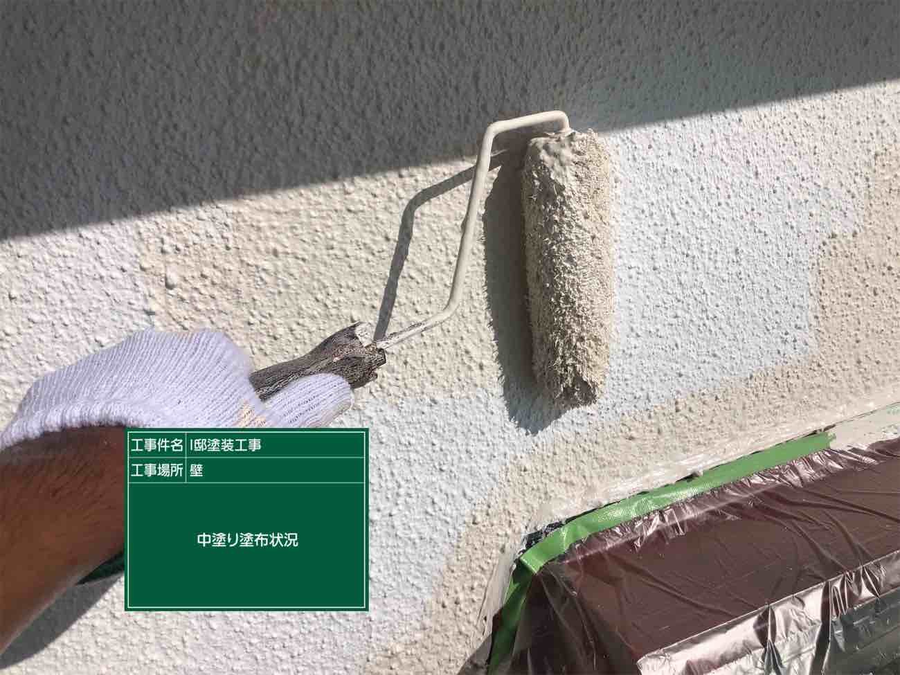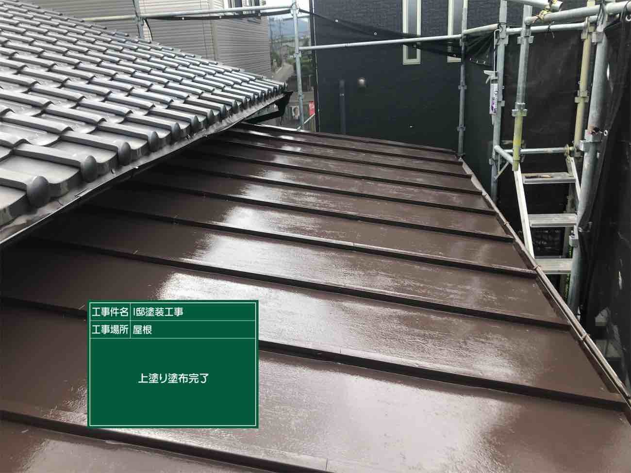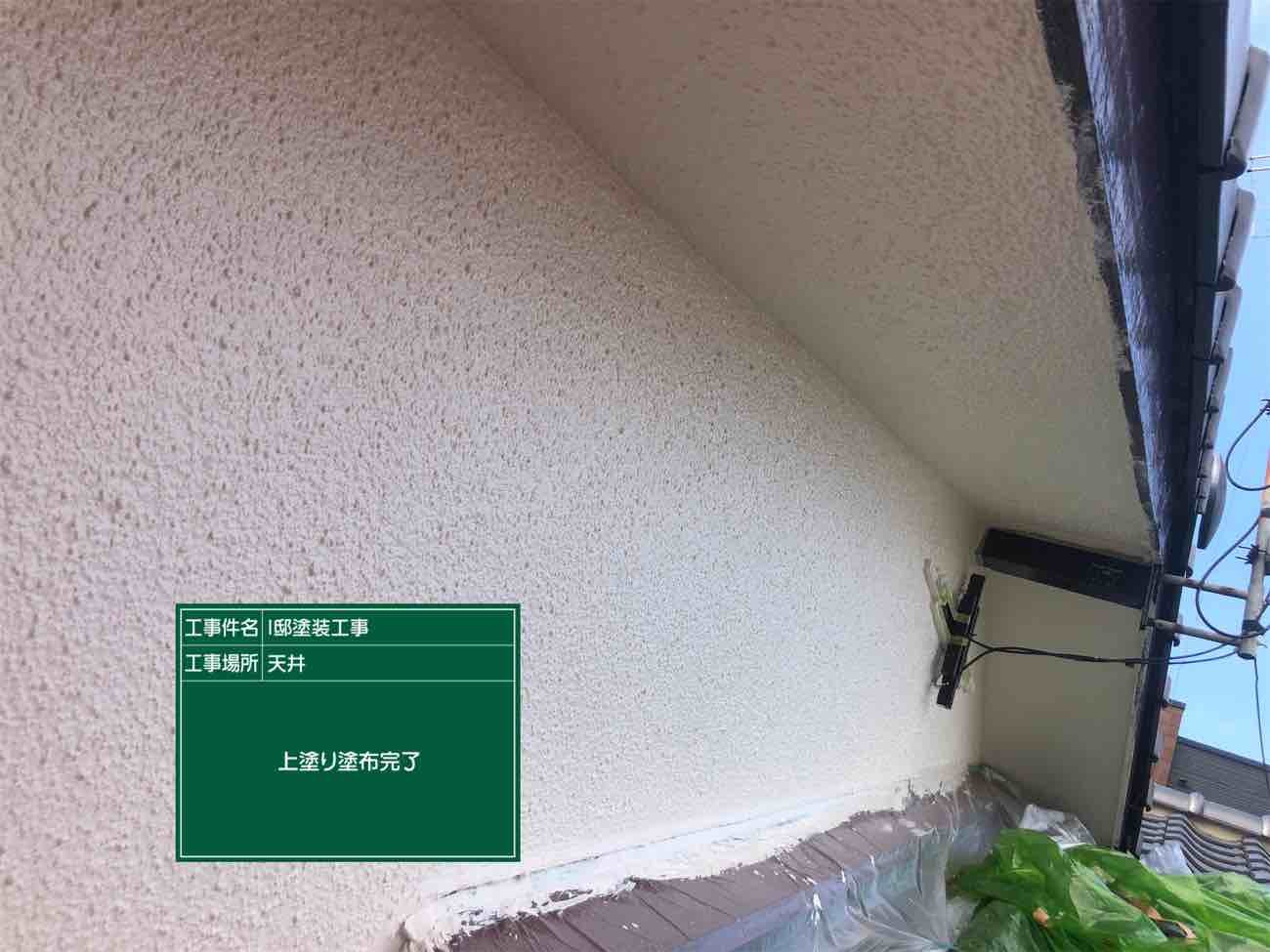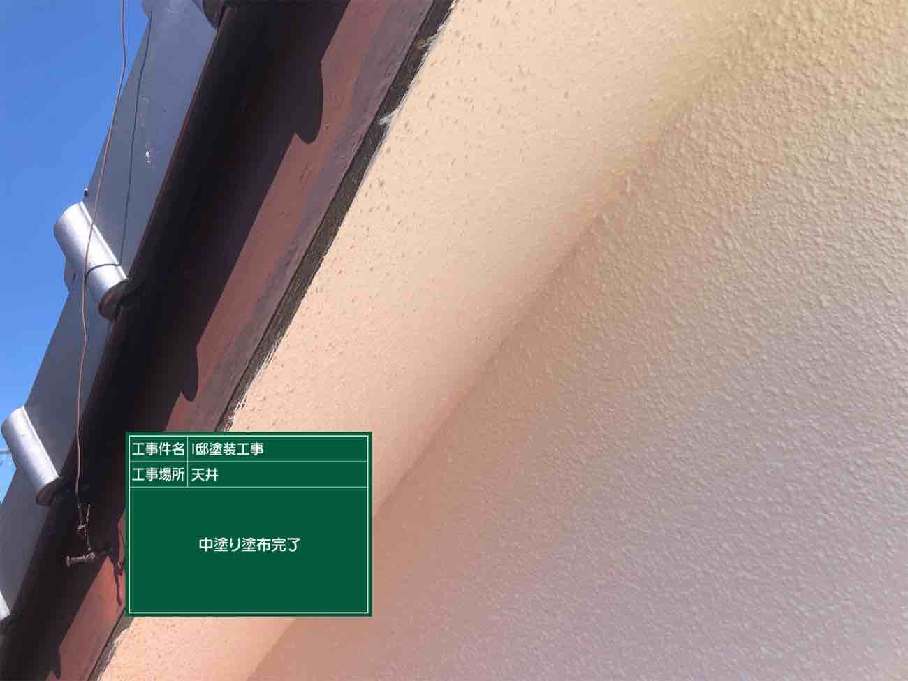 中塗り完了。軒天に当たる部分までしっかり塗布しています。
