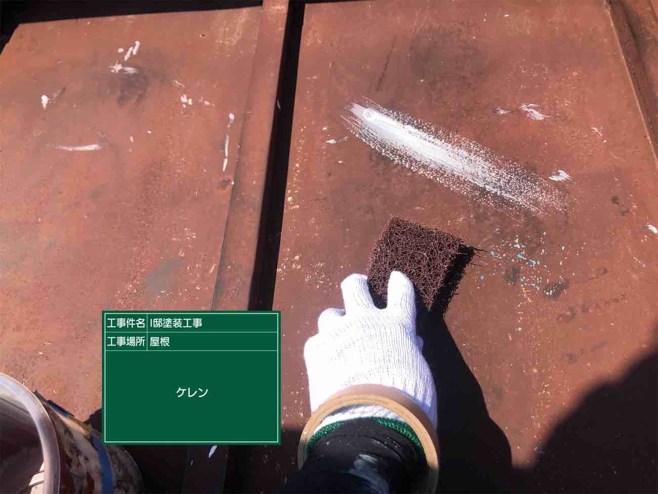 鉄部はまずケレン作業で下地処理を行い表面をならしていきます。