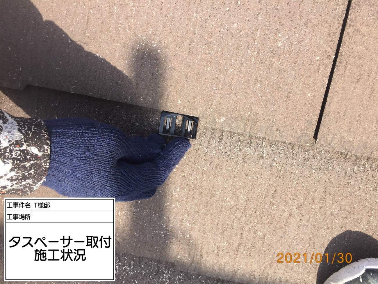 タスペーサーはスレートタイプのお屋根で初めての塗装の際に使用します。2回目以降は入れなくても大丈夫です。