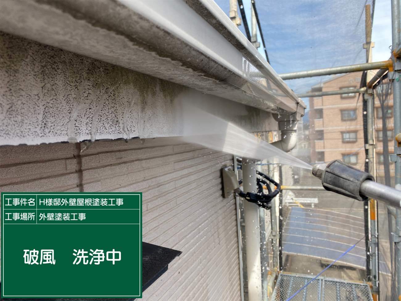 今回のメイン工事となる外壁屋根はもちろん、付帯部など塗装箇所は全て洗浄していきます。