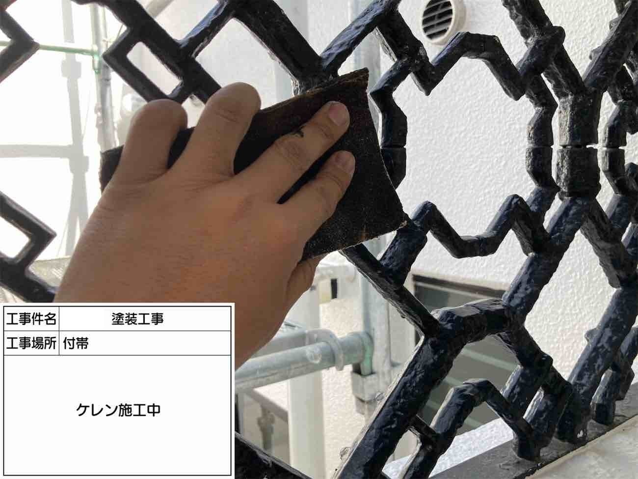 格子のケレン作業を行います。格子の汚れを削って取り除いていきます。