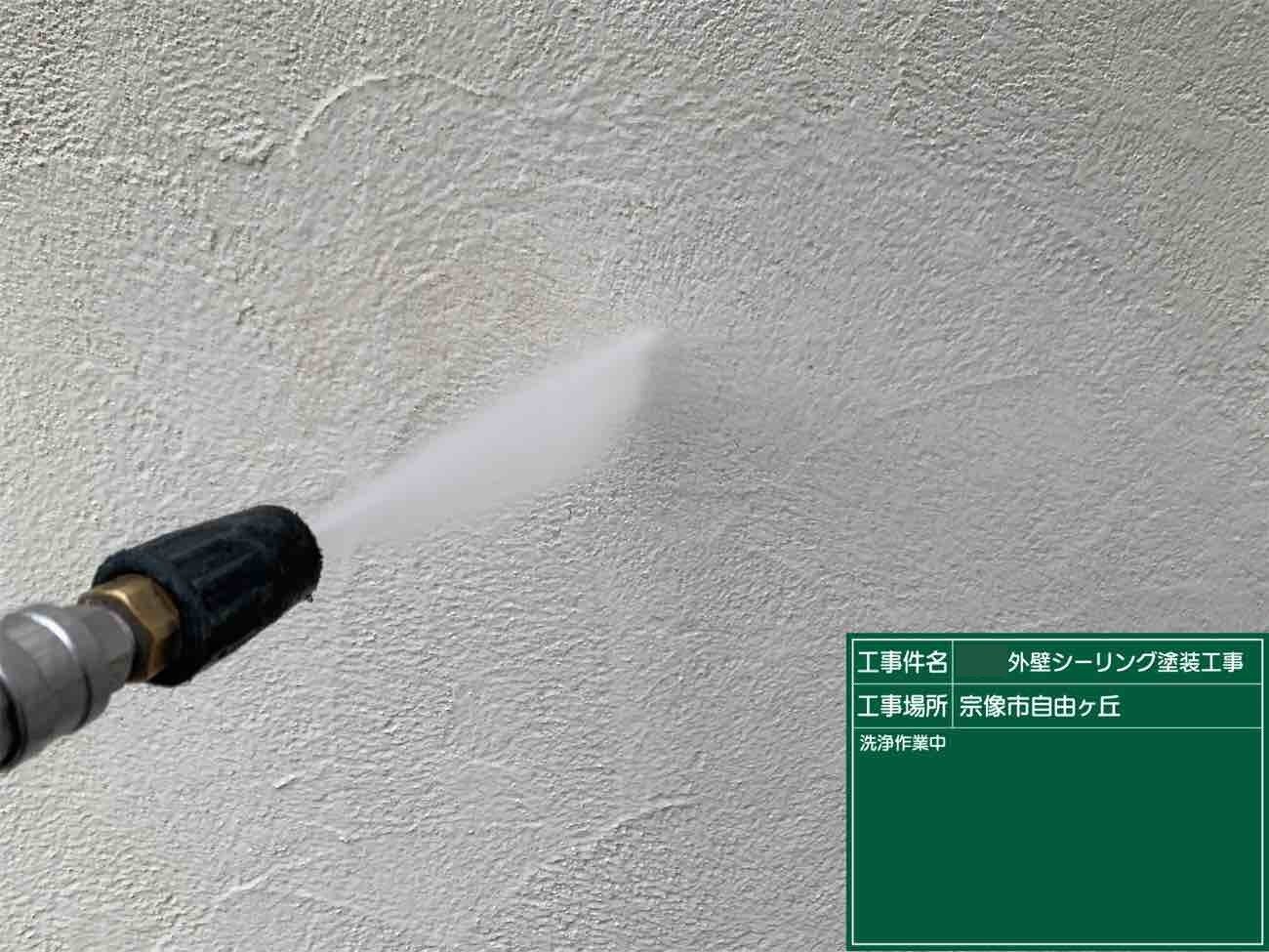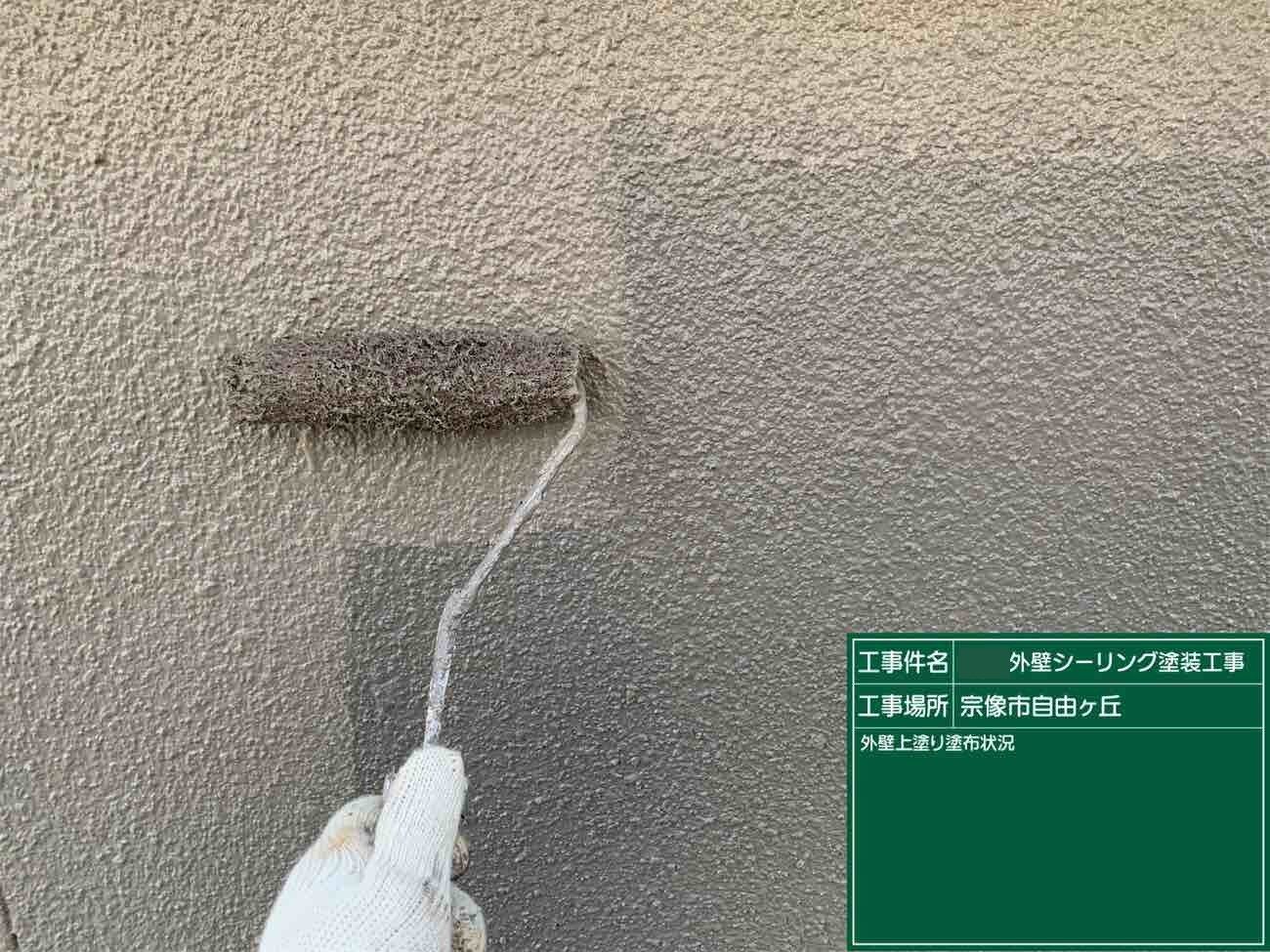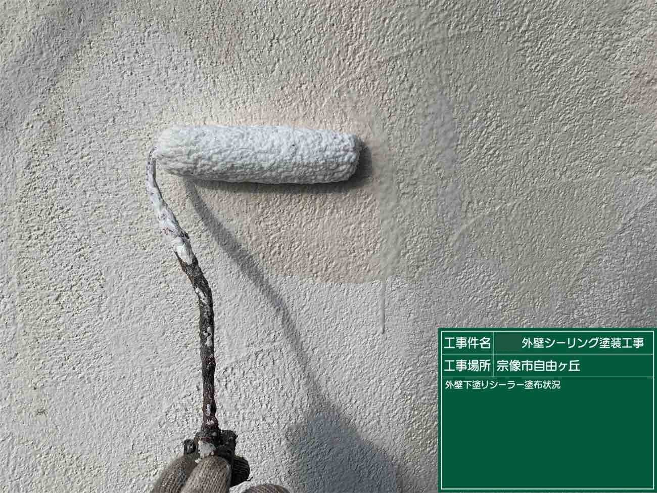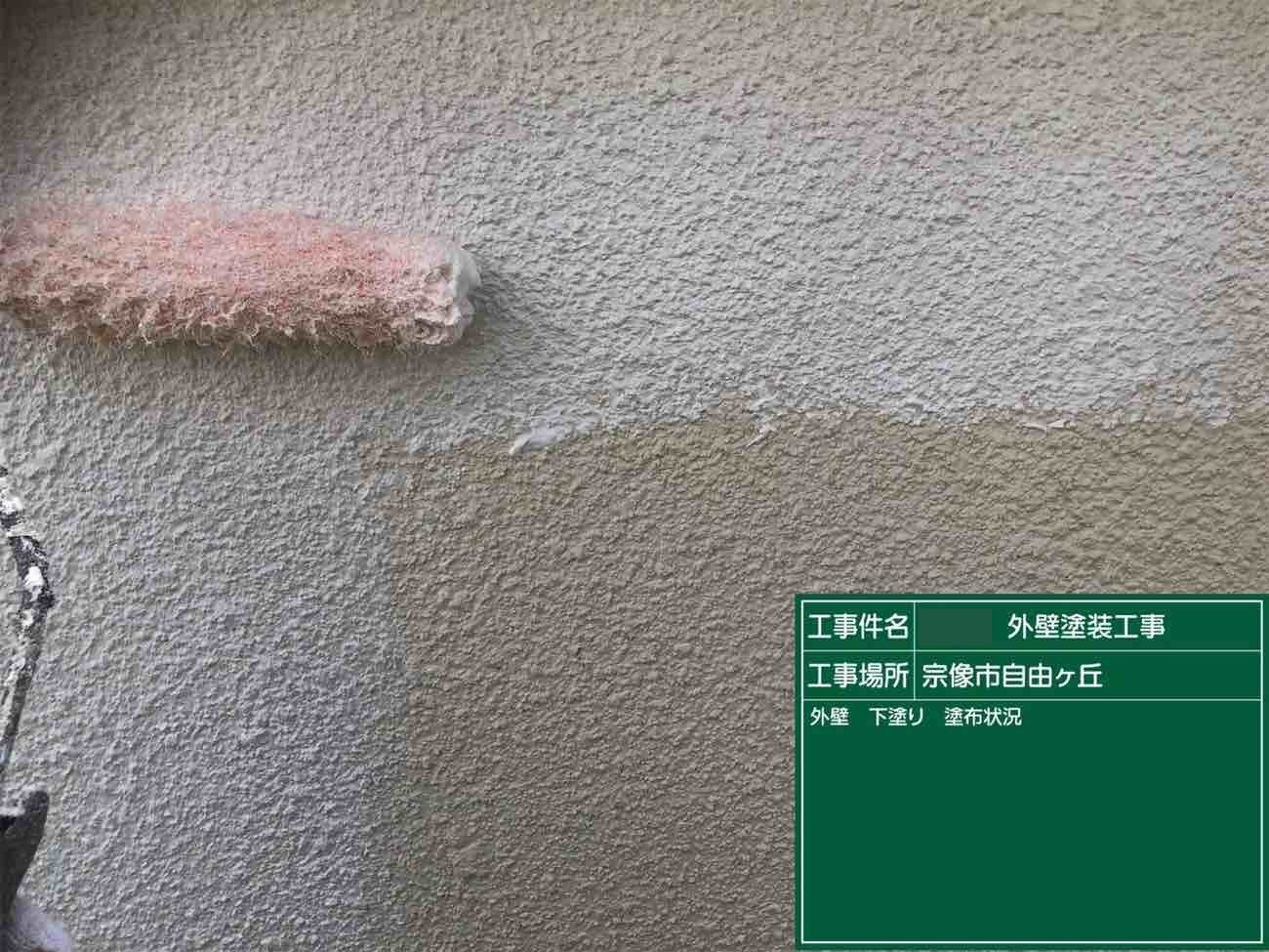 外壁の下塗り作業です。これは下塗り1回目の作業になります。